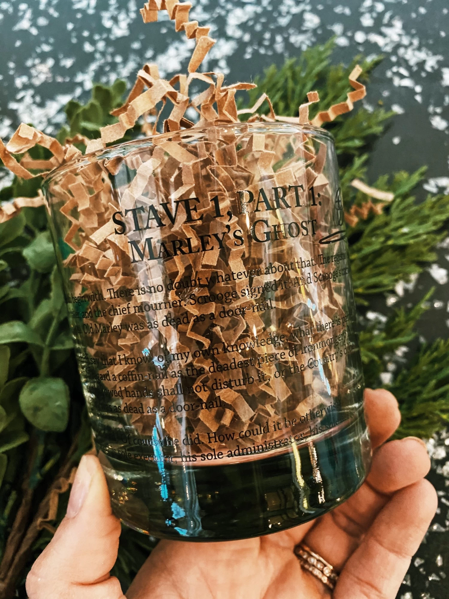 11 oz. rocks whiskey glasses showcasing the first edition cover artwork and opening lines of A Christmas Carol by Charles Dickens. The perfect gift for literature lovers and book worms everywhere. Sturdy, high-quality glass made for a lifetime of use. Each glass comes individually boxed in our eco-friendly, retail-ready packaging. Designed and made in the USA. Capacity – 11 oz. Weight – 0.5 lbs. Dimensions – 3.25″ dia x 3.5″ h.