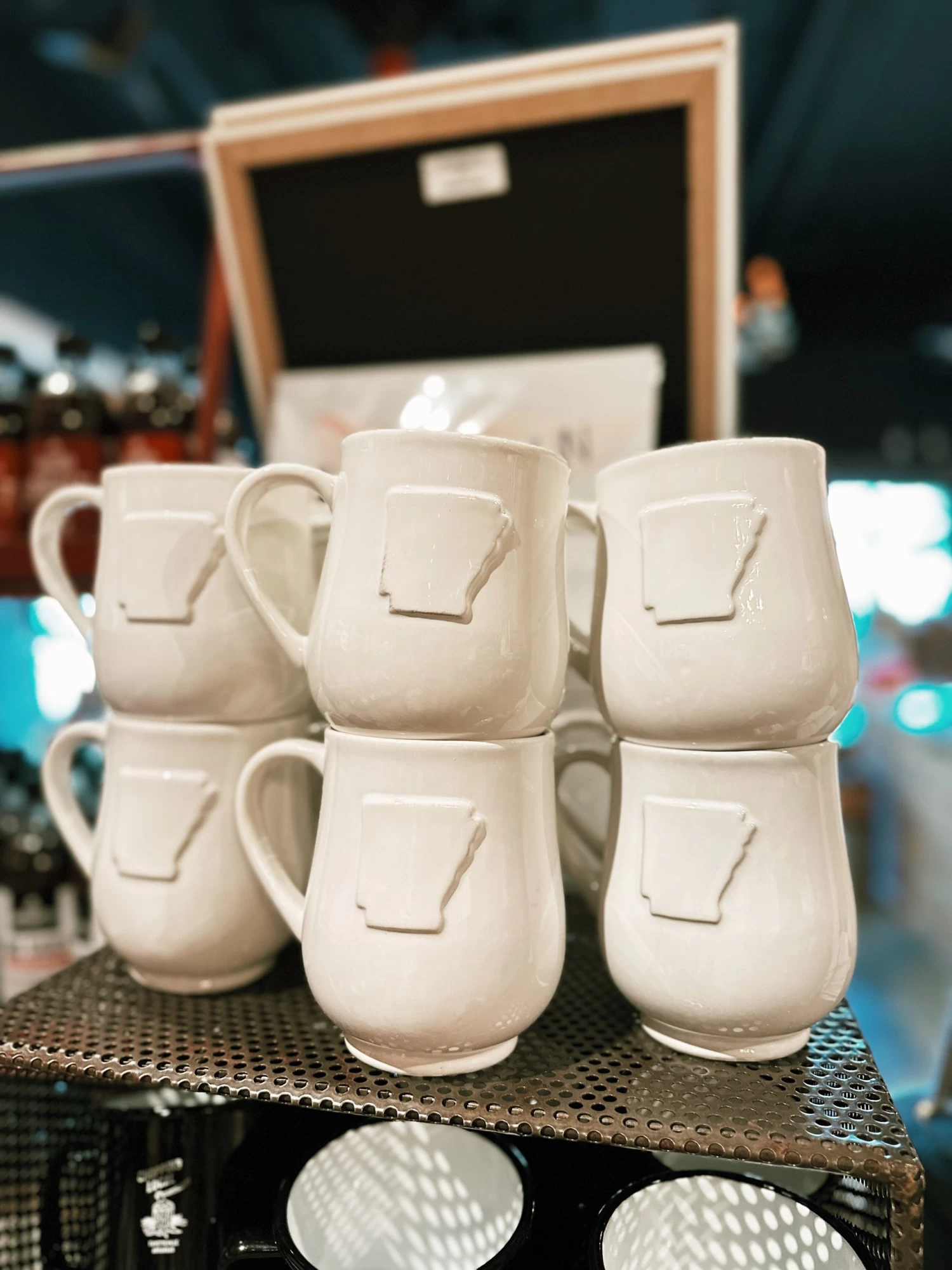 The Arkansas Embossed Coffee Mug is ideal for slow morning on the porch with a good book.