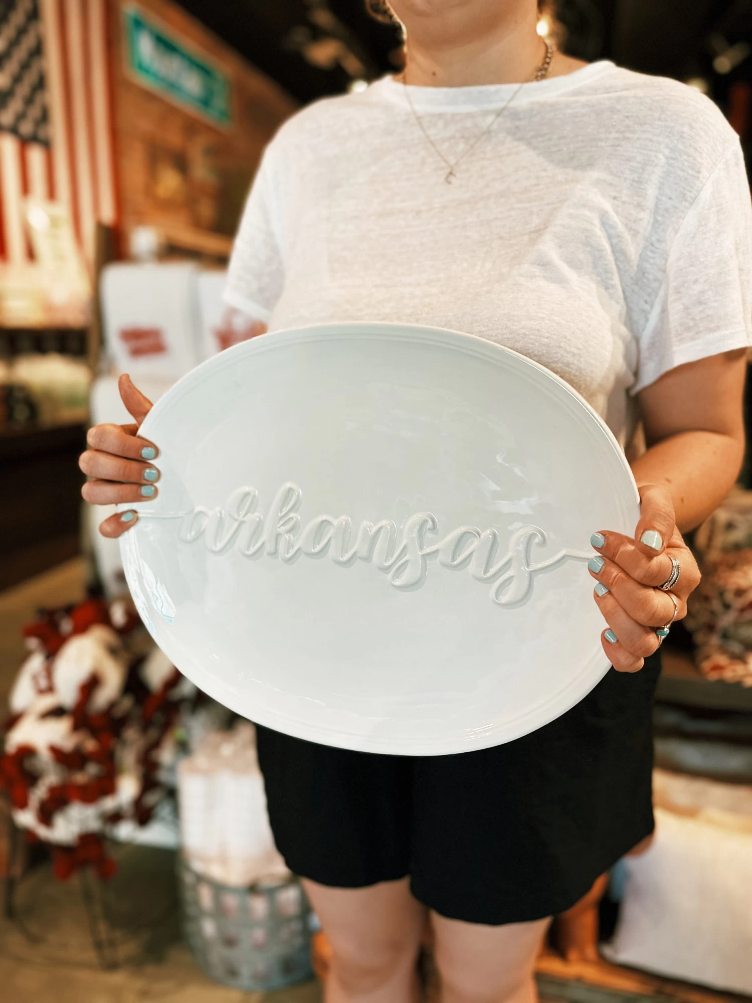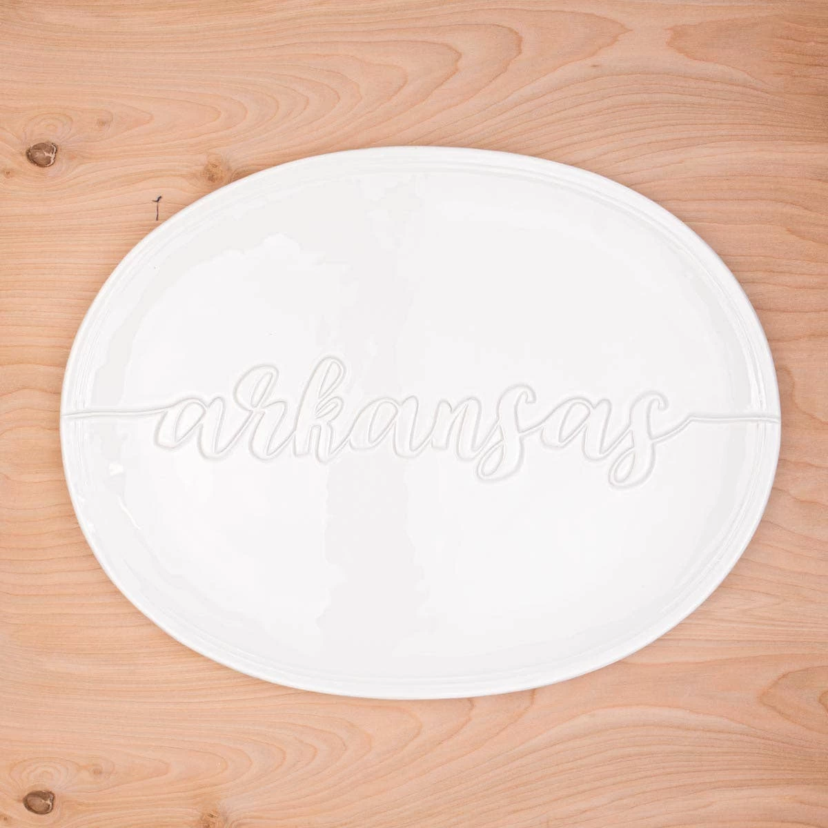 The Arkansas Embossed Platter is the perfect serving piece for any Arkansas related events from football games to graduation. Since the tray itself is white, it can match any decor or tablescape!