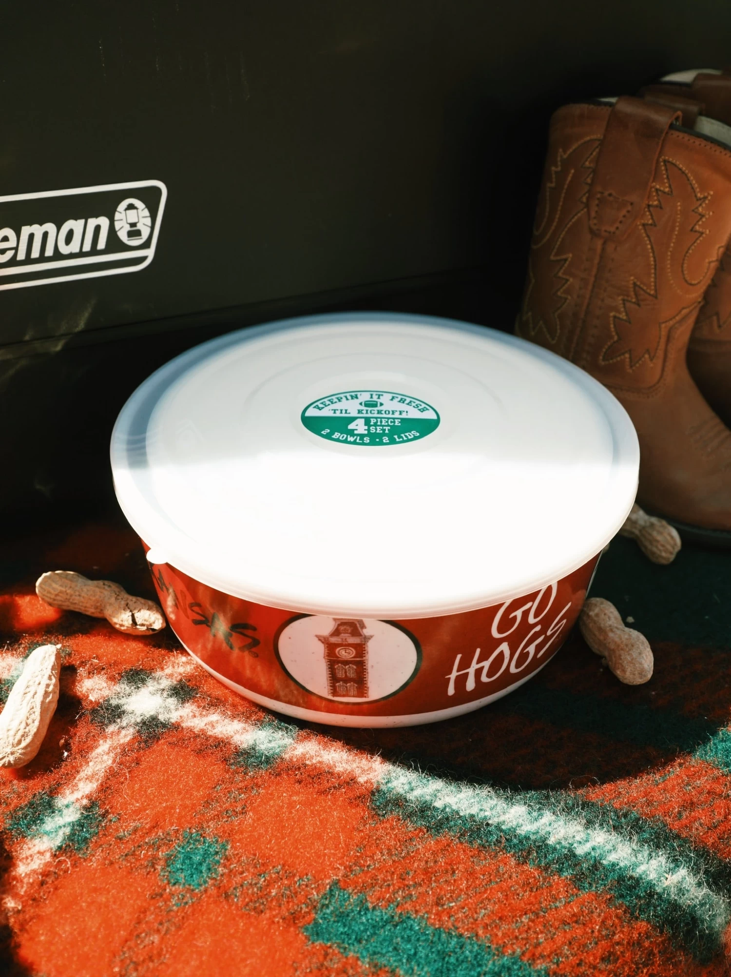 Set of two Arkansas food containers. Perfect for transporting tailgate snacks from home to the tailgate.