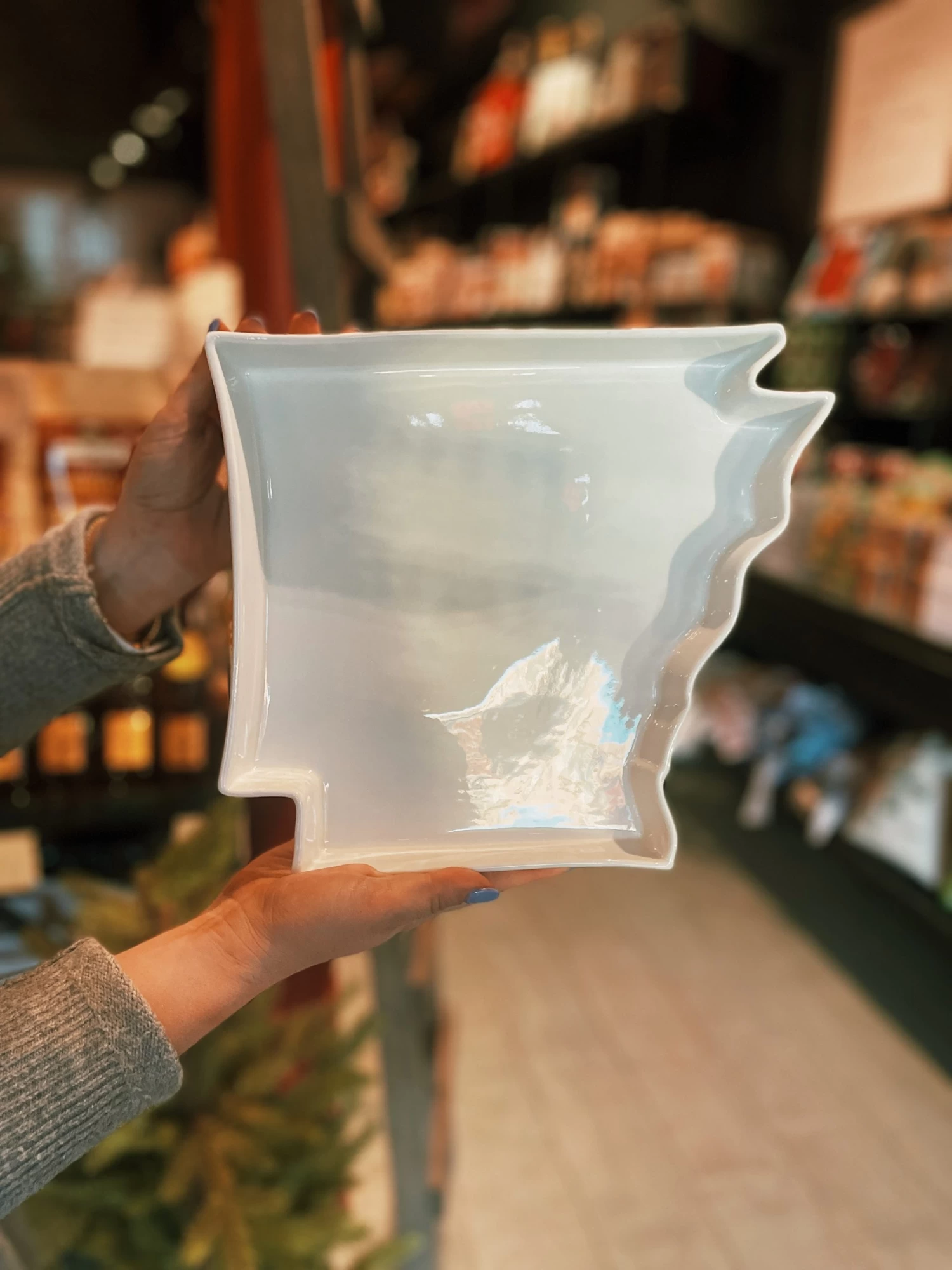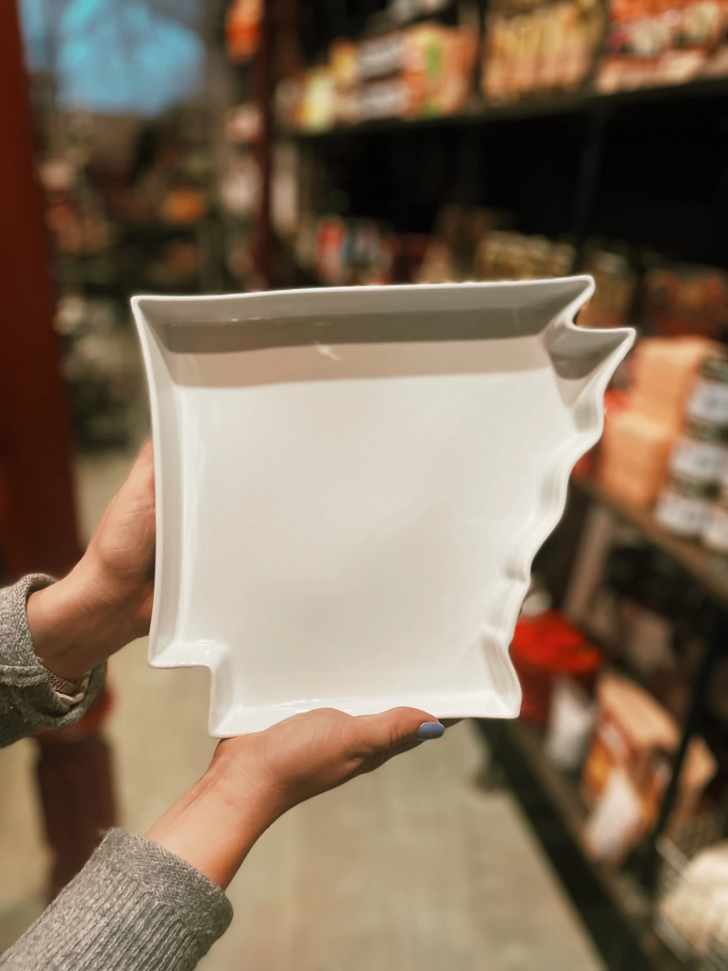 Bring your love of Arkansas into the kitchen and serve up state-shaped casseroles, dips, entrees, appetizers, pies, cakes, favorite holiday dishes, family recipes, and more. Crafted in high-fire porcelain and sealed with glossy white glaze for a non-stick surface, this Arkansas-shaped bakeware is free of all lead and toxins which means it’s safe for food use in the oven, microwave, and dishwasher.