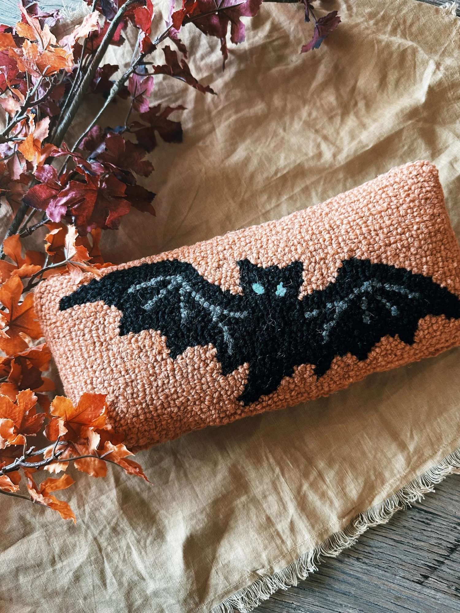Hooked Throw Pillow Skillfully handcrafted with 100% wool and backed with luxurious 100% cotton velveteen backing 12×5 inches 100% Polyester Blown-in Filled halloween decoration