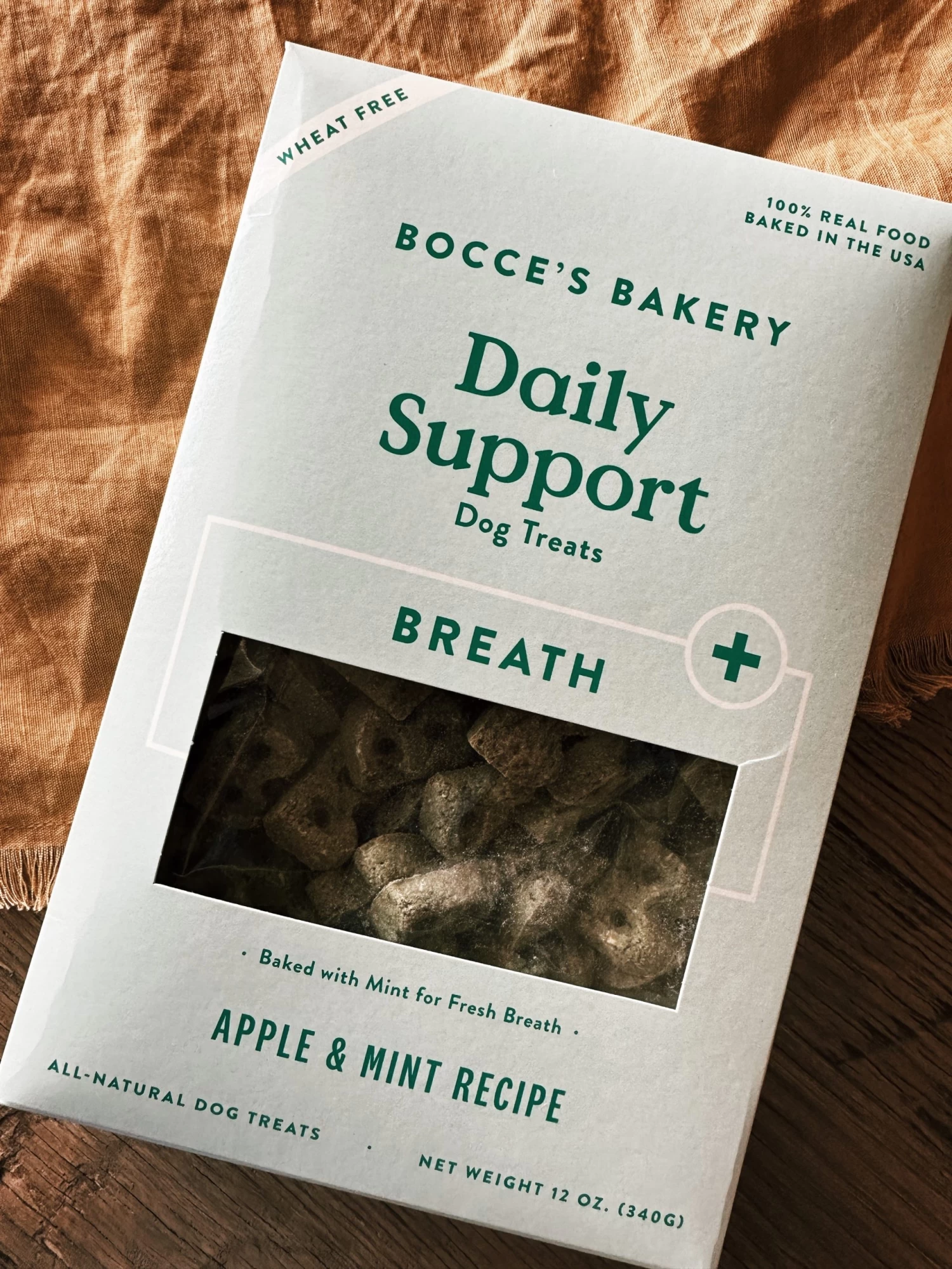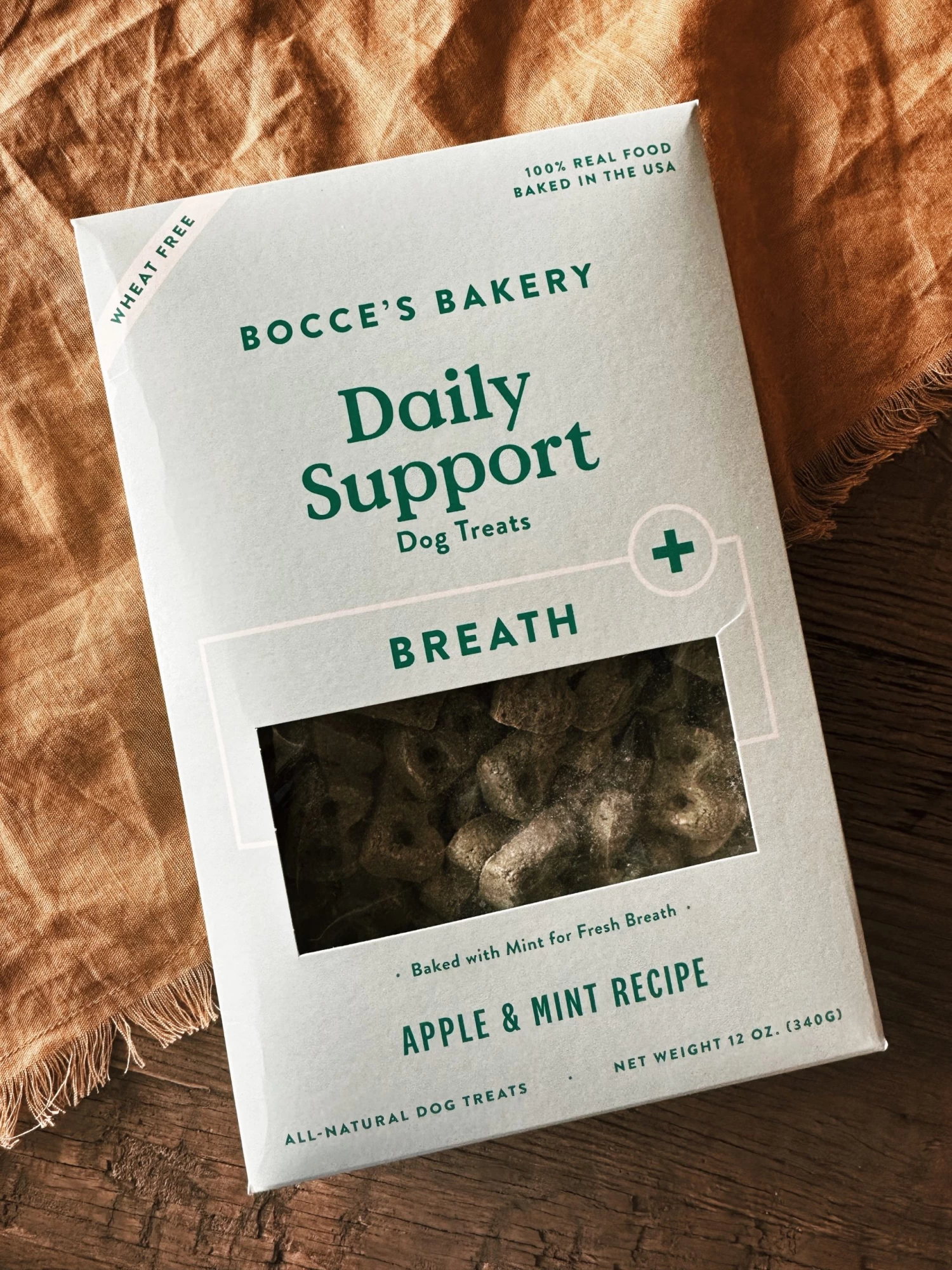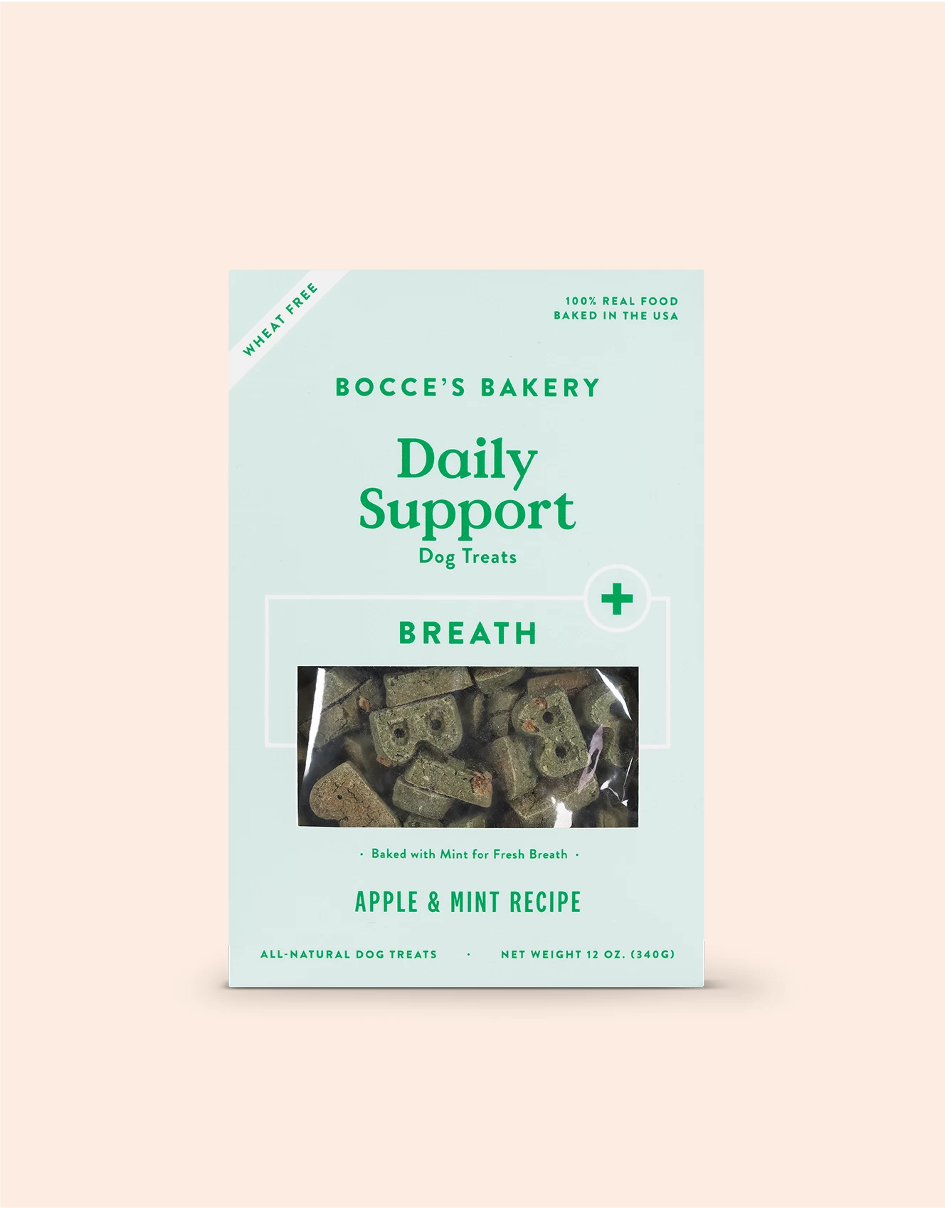 Meet our yummy apple biscuit, baked with mint for the freshest doggie breath on the block.