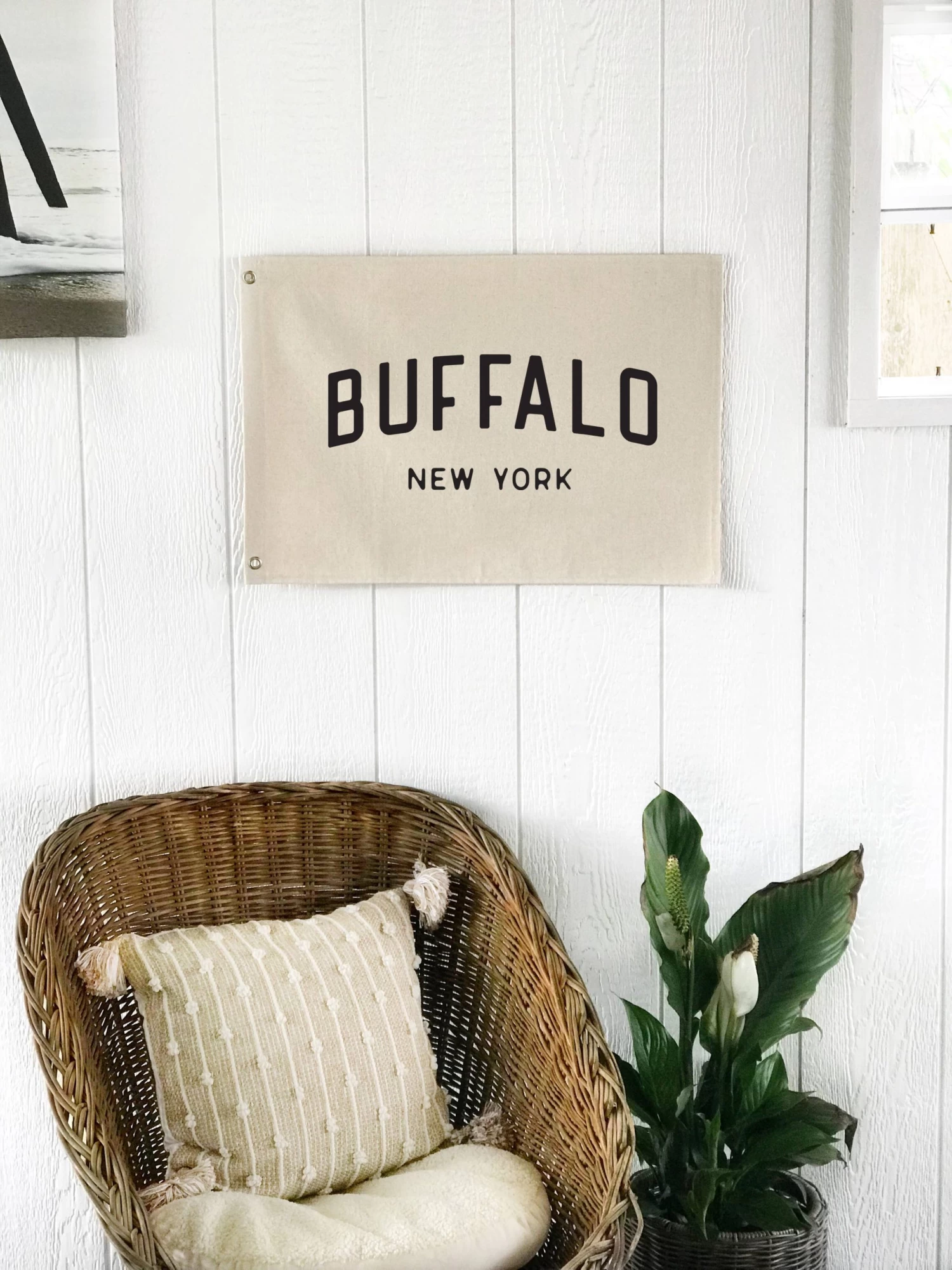 Canvas Banner Wall Flag Pennant 100% Large Cotton Canvas, Natural Unbleached in color (NOT white) Banner measures approx 18″x27″ Finished with 2 Side Grommets for easy hanging Printed in center of pennant as shown – Professional grade heat transfer print, applied with industrial grade press. Print is embedded into the fabric with extreme heat & pressure – you will not be able to feel or peel the image (NOT an iron-on) PLEASE NOTE: – Print is not waterproof or treated for outdoor use – It is best to release creases from shipping by hanging or laying weight on top of them, or ironing on NON-print side ONLY – NEVER iron directly on print.