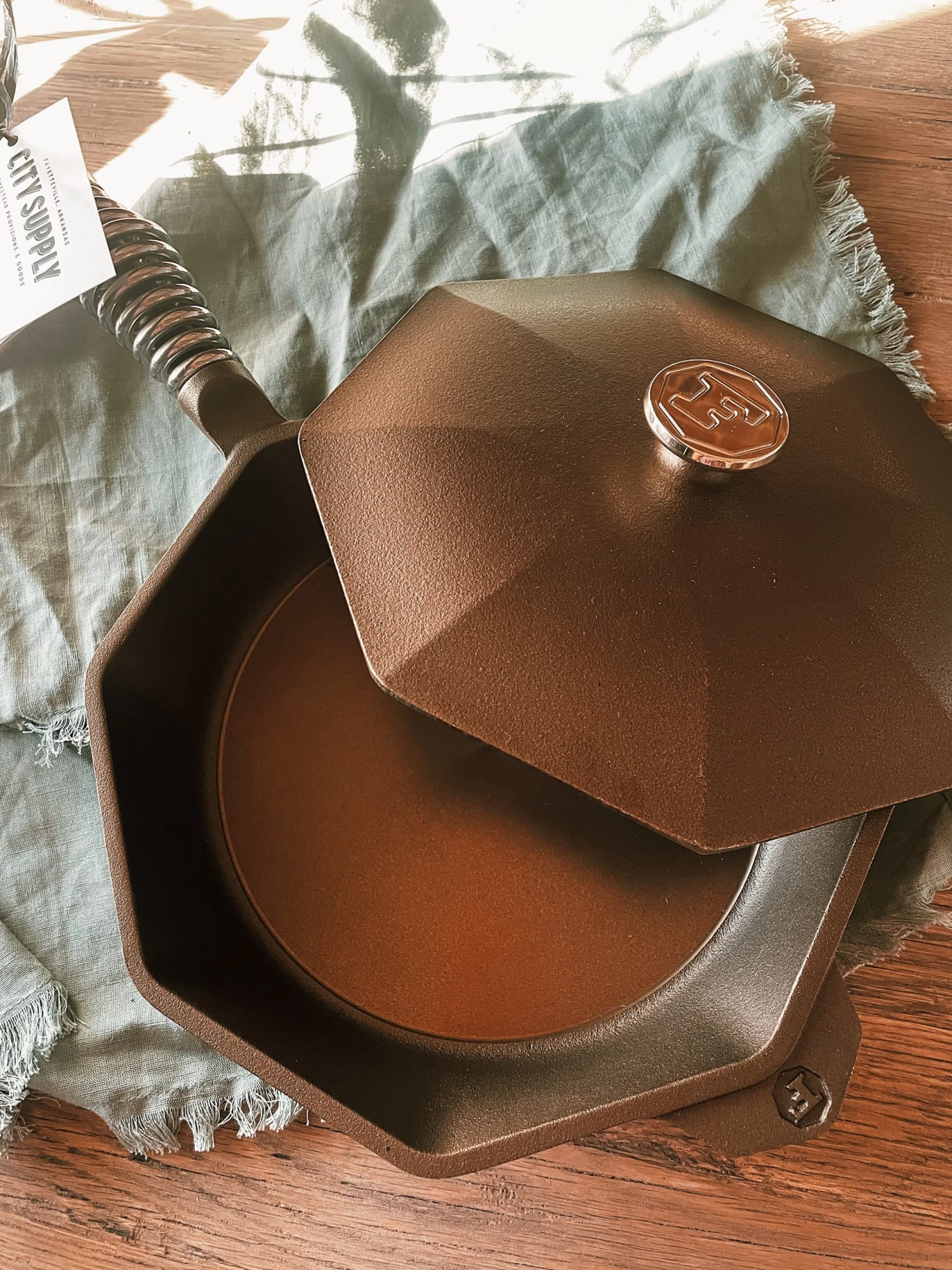 The most versatile pan you’ll ever own. The FINEX cast iron skillet is polished smooth for perfect eggs every time. It’s a searing machine for hearty steaks, chops and salmon. It’s brilliant for baking perfect cornbread, pies and cakes. Introduce a lid and it’s great for steaming, braising and simmering. From stovetop, to oven, to grill—even over the coals—the FINEX cast iron skillet is a trusted essential you’ll pass down for generations.