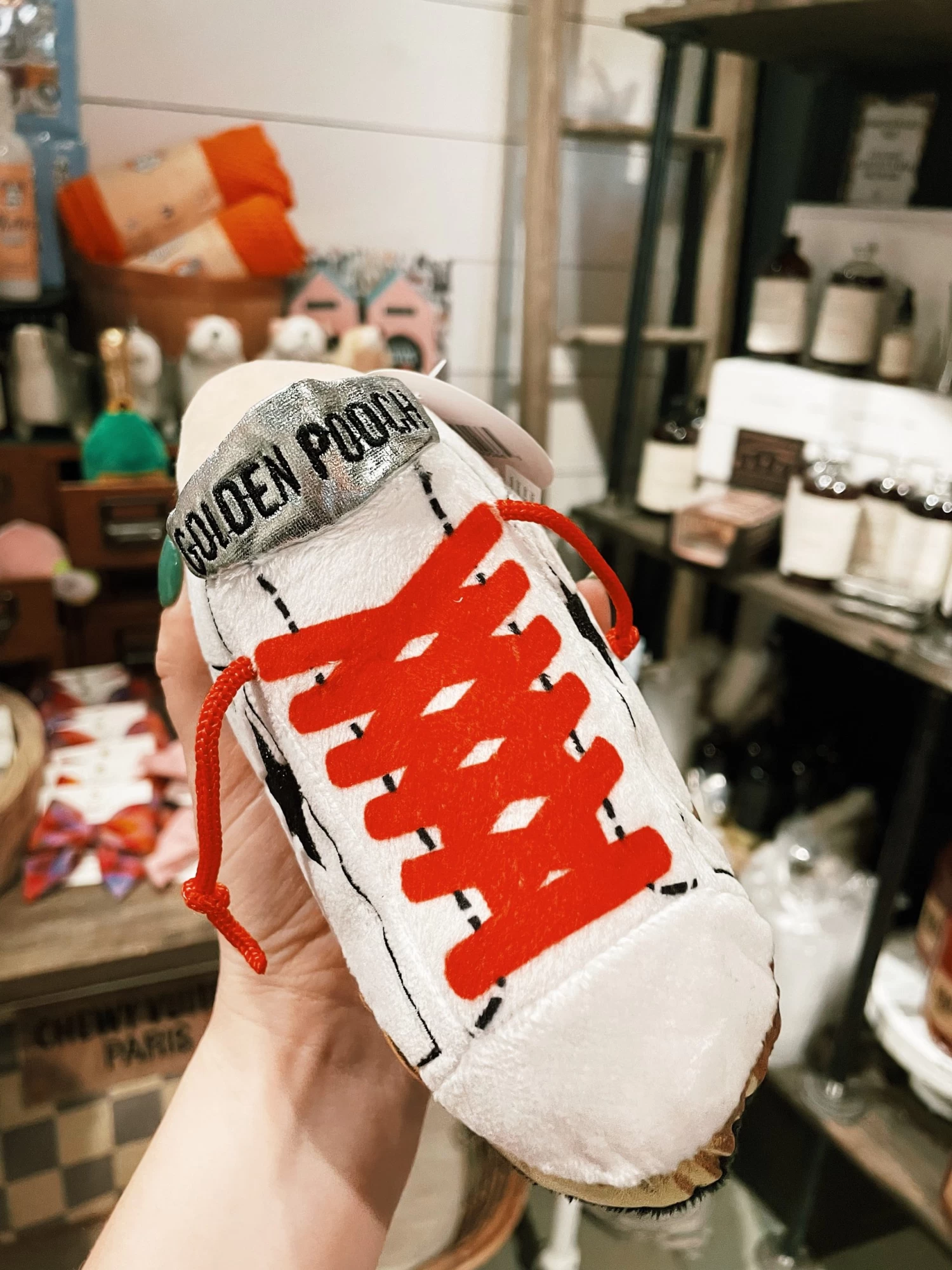 A shoe they can actually play with! The Golden Pooch dog toy will keep your pup entertained!Â