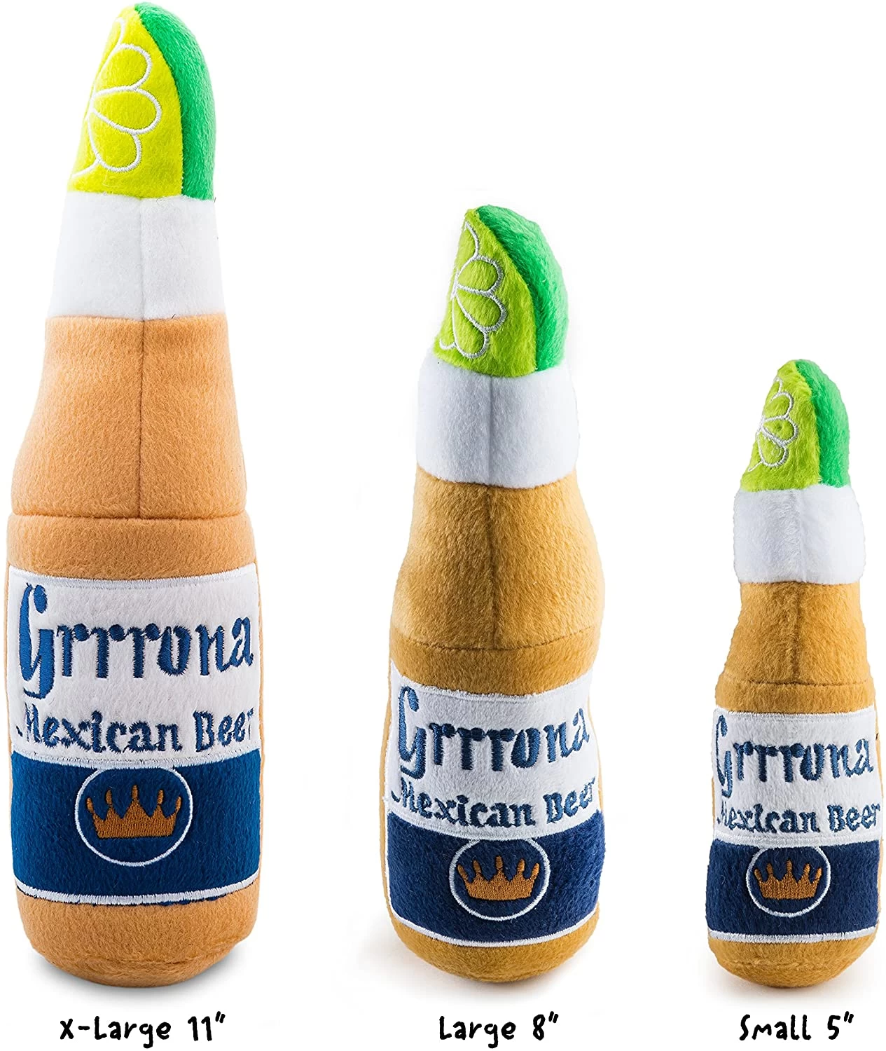 Now your dog can have his own bottle of beer to play with! Grrrona Beer plush squeaker dog toy inspired by your favorite bottle of beer has a squeaker inside for your dog’s enjoyment.