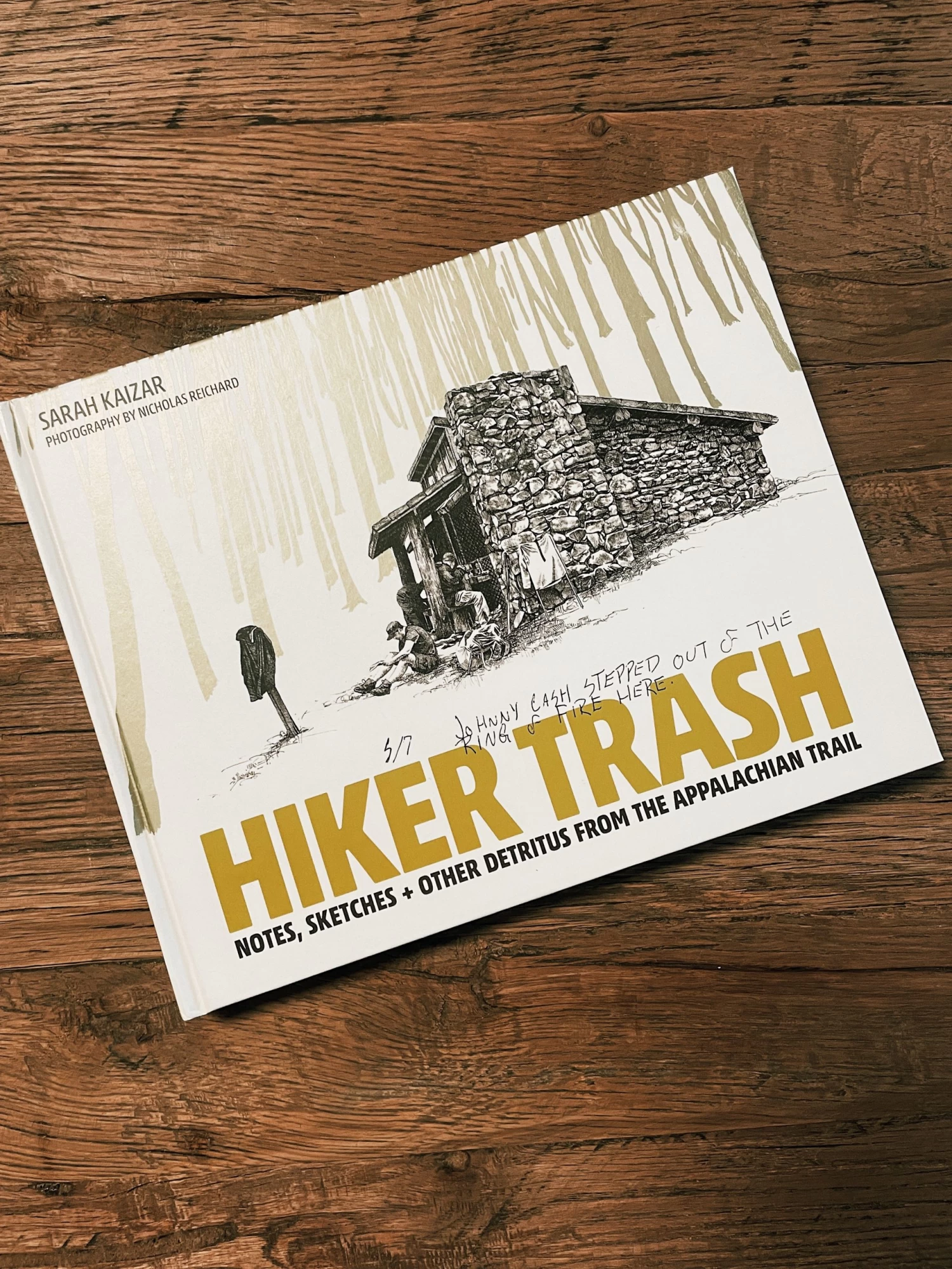 Hiker Trash Notes, Sketches, and Other Detritus from the Appalachian Trail. A collage of backpacking culture, Hiker Trash offers a glimpse of the off-beat, diverse community that is drawn to thru-hiking the country’s oldest long-distance trail. It features a collection of original illustrations by author and artist Sarah Kaizar, as well as color photos by Nicholas Reichard and excerpts from the Appalachian Trail’s famed shelter log books that highlight hikers’ thoughts, fears, frustrations, and joys.; Kaizar thru-hiked the AT in 2015, a six-month, 2,200mile journey through fourteen states during which she had plenty of time to reflect and heal following the death of her father.