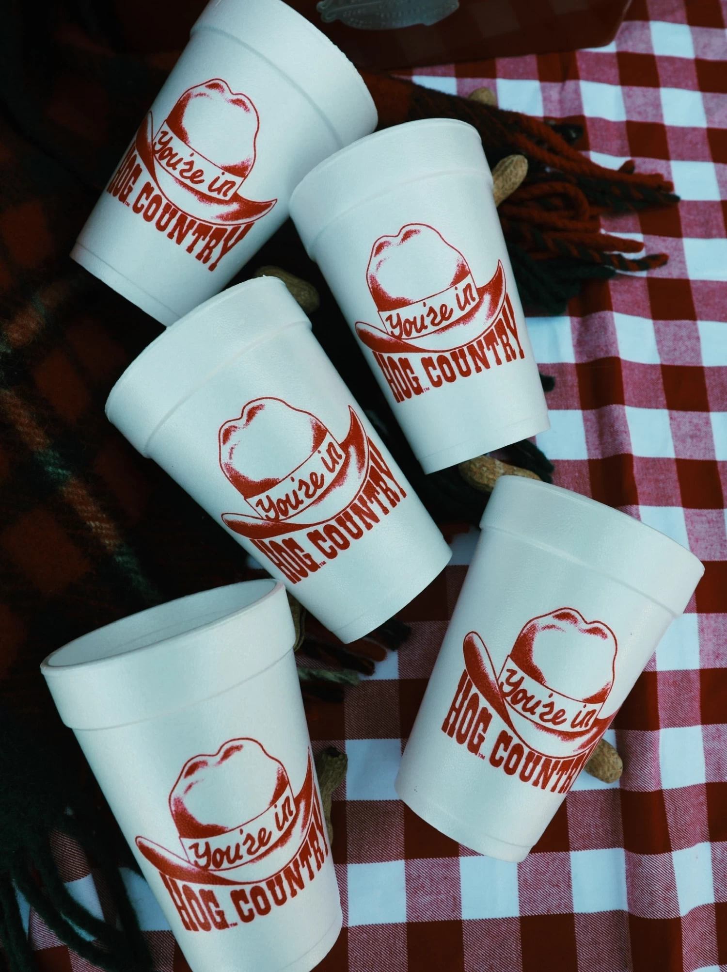You’re in Hog Country! Use these foam cups at your next tailgate or at home watch party! They’re sure to be a crowd pleaser!