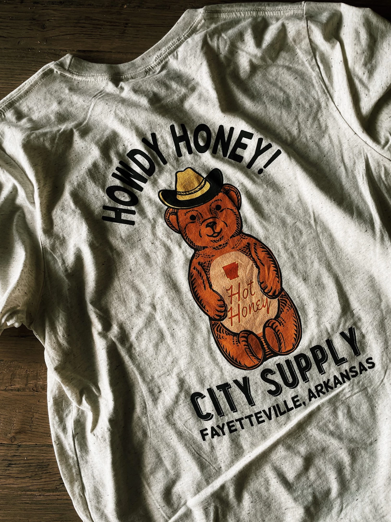 Howdy Honey! This tee celebrates on of our favorite products: Hot Honey!
