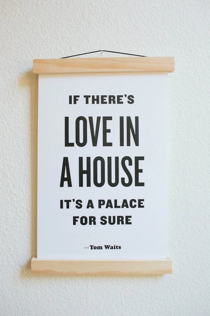 Quote reads, “If there’s love in a house, it’s a palace for sure – Tom Waits”