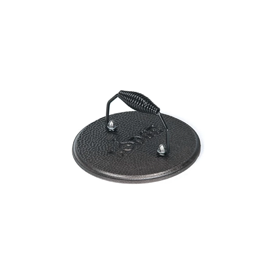Our Round Grill Press is perfect for using in Lodge’s round skillets for pressing unwanted fats from meats or eliminating curl from bacon. Its sturdy design includes a cool-grip spiral handle and hammered finish. Seasoned and ready to use.