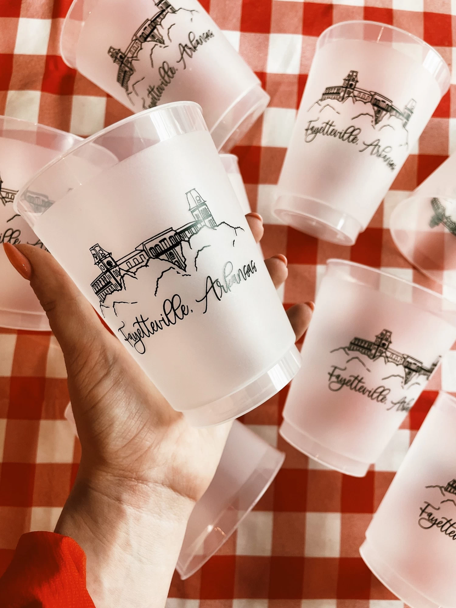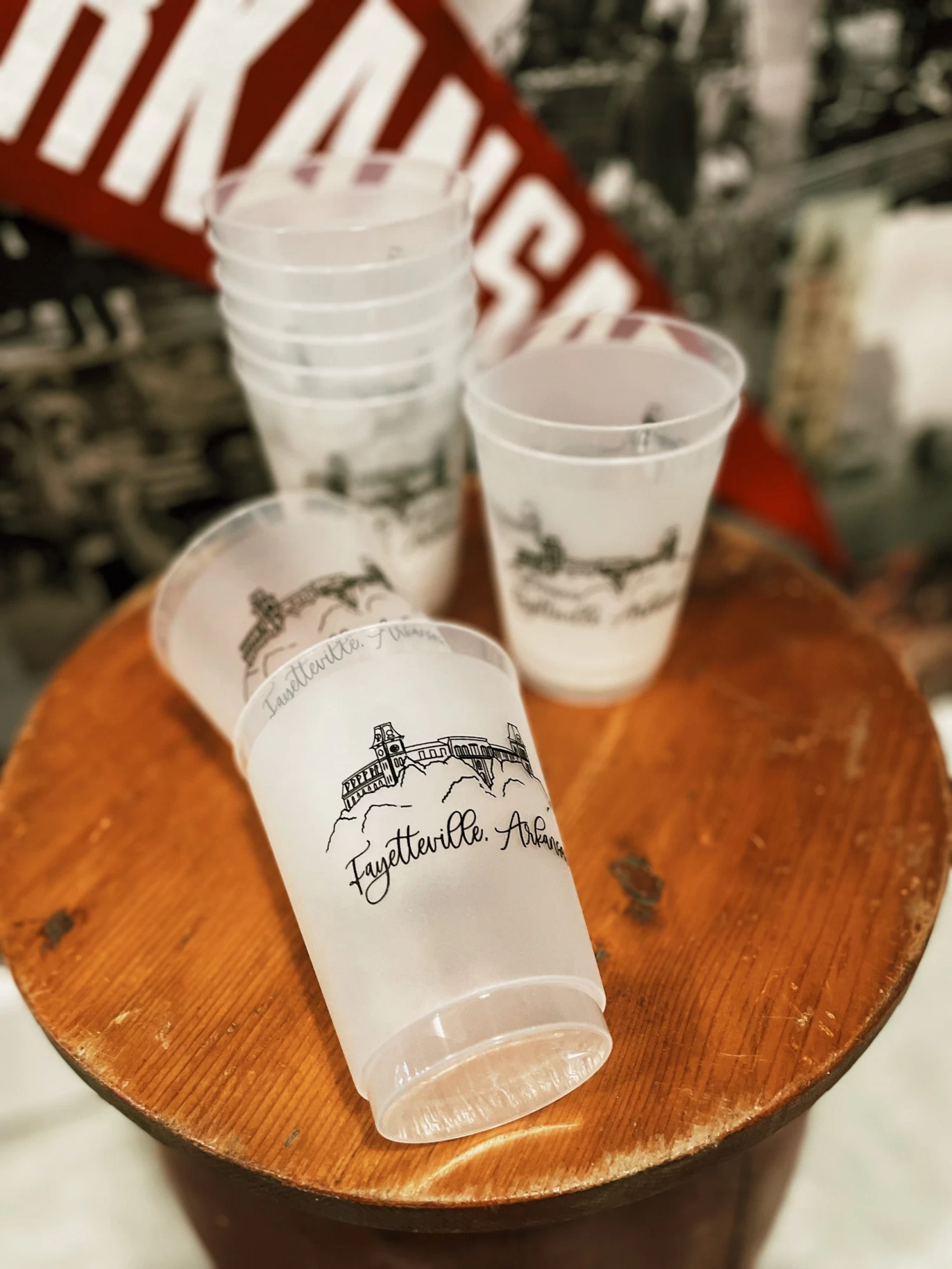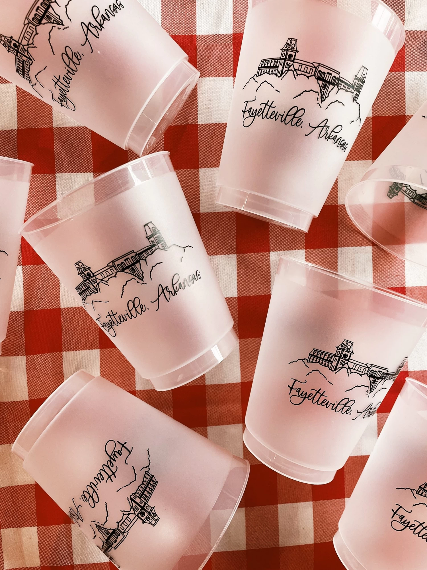 Old Main is the most iconic building in Fayetteville, AR and on the University of Arkansas campus. Bring your memories of Old Main into your home with these frosted flex reusable cups!