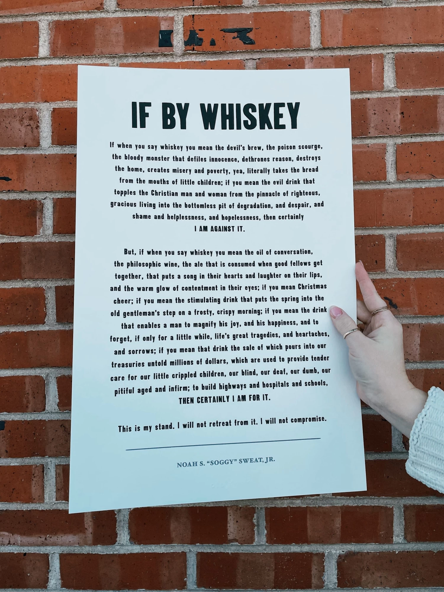 But, if when you say whiskey you mean the oil of conversation, the philosophic wine, the ale that is consumed when good fellows get together, that puts a song in their hearts and laughter on their lips, and the warm glow of contentment in their eyes; if you mean Christmas cheer; if you mean the stimulating drink that puts the spring into the old gentleman’s step on a frosty, crispy morning; if you mean the drink that enables a man to magnify his joy, and his happiness, and to forget, if only for a little while, life’s great tragedies, and heartaches, and sorrows; if you mean that drink the sale of which pours into our treasuries untold millions of dollars, which are used to provide tender care for our little crippled children, our blind, our deaf, our dumb, our pitiful aged and infirm; to build highways and hospitals and schools, then certainly I am for it.