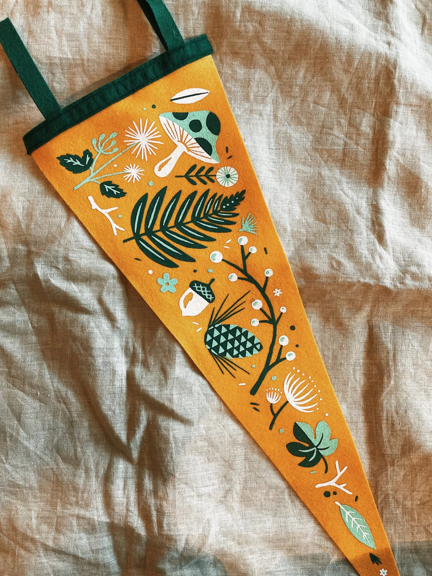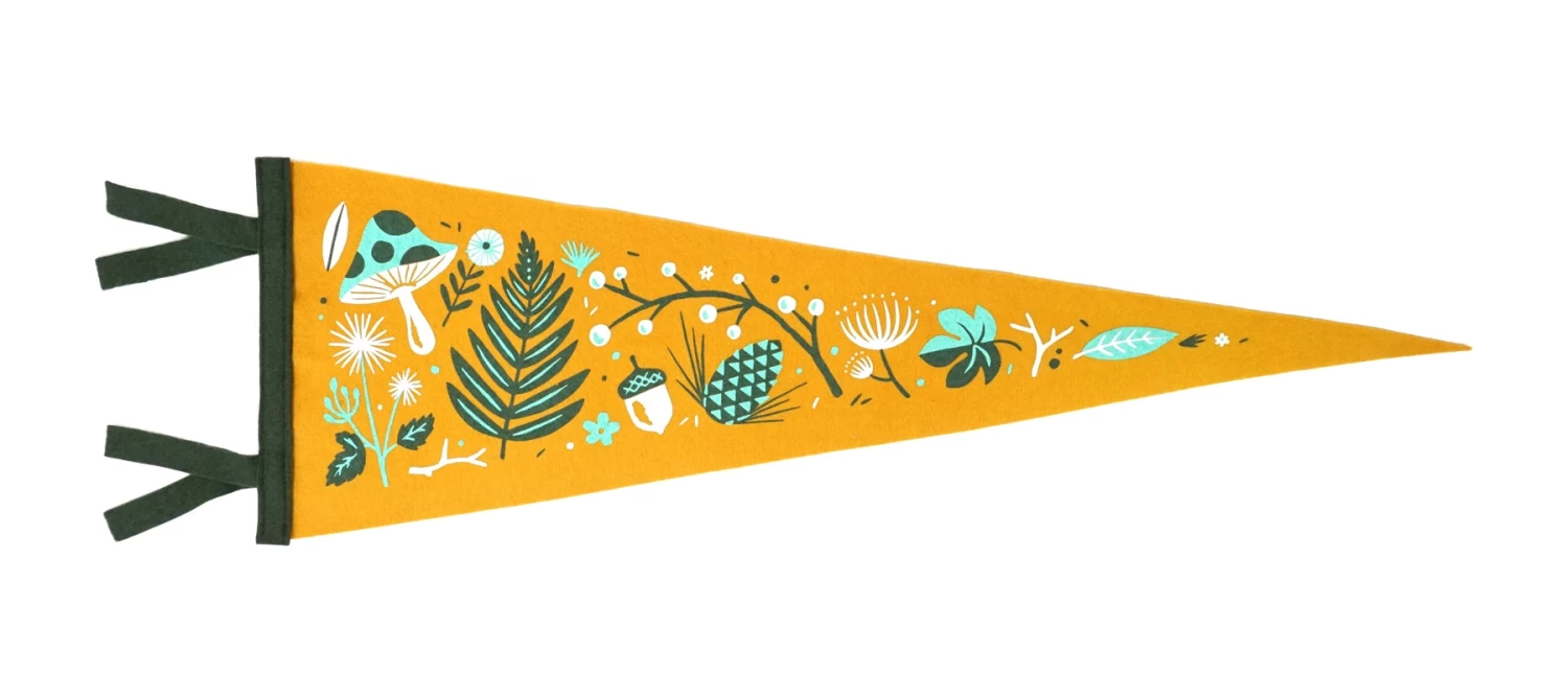 This whimsically illustrated custom pennant is a collaboration with Austin, TX-based Brave the Woods. Perfect for lovers of wilderness and adventures alike.