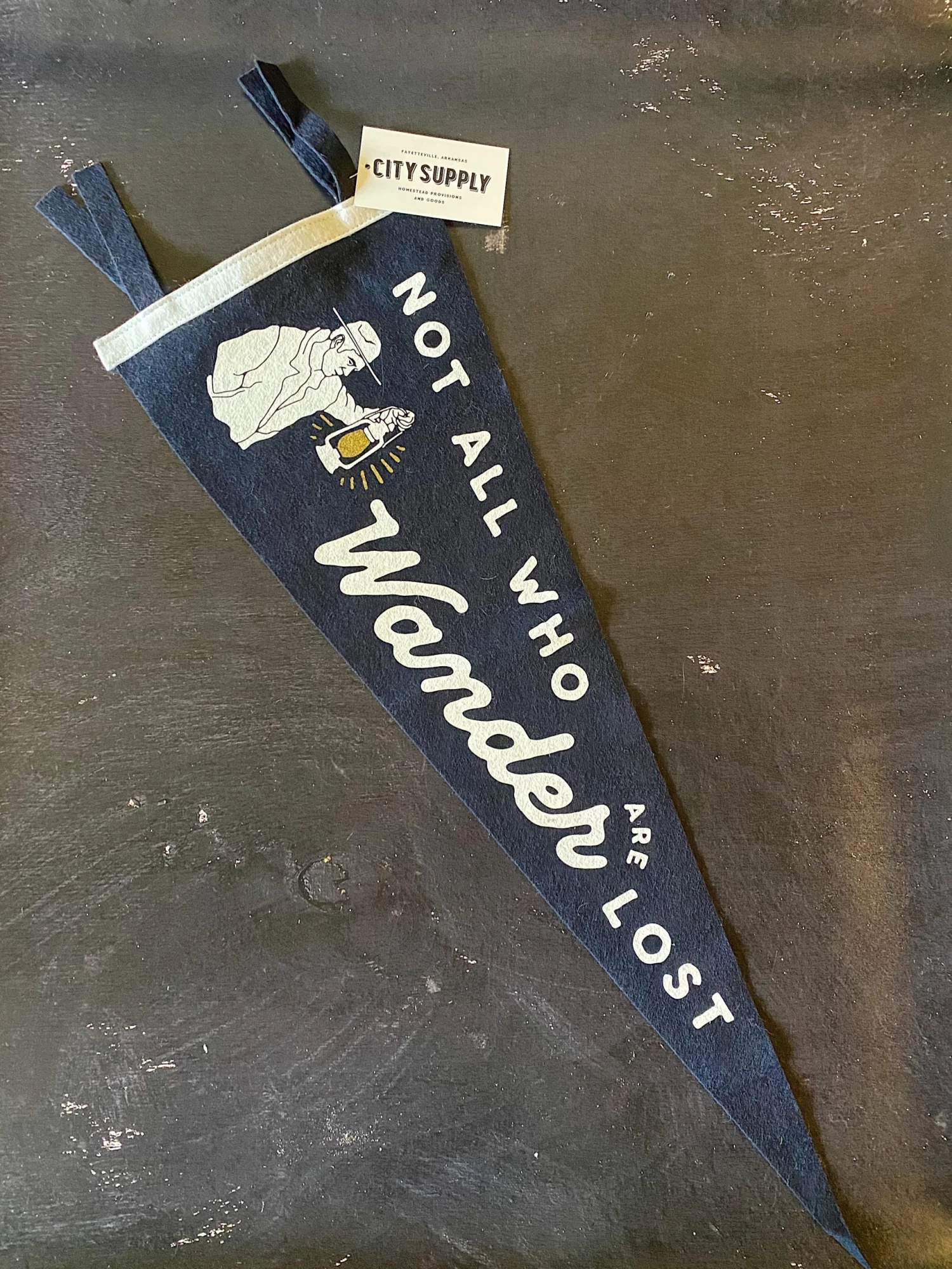 There’s always something new to discover. This custom Not All Who Wander are Lost pennant is a collaboration with Brandon Burk. Design by Jim Waws.