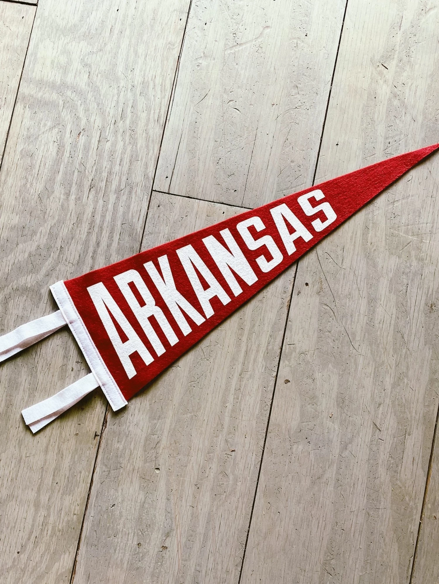 The Arkansas pennant is perfect for dorms, bedrooms, bulletin boards, and just about any wall in your house! Great gift for graduates and those new to the state.