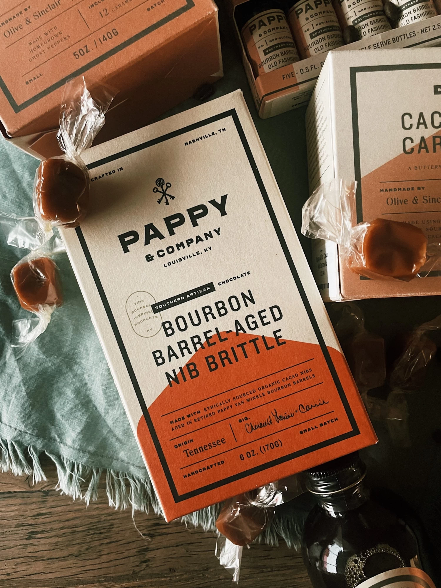 Bet you can’t say that five times fast? You could however, watch it disappear in about 10 seconds flat. So let us break it down for you. Bourbon. Nib. Brittle. Organic cacao bean “nibs” are aged to perfection in Pappy Van Winkle bourbon barrels, then blended with a caramelized buttery brittle and finished with a layer of 67% chocolate. See what we mean…