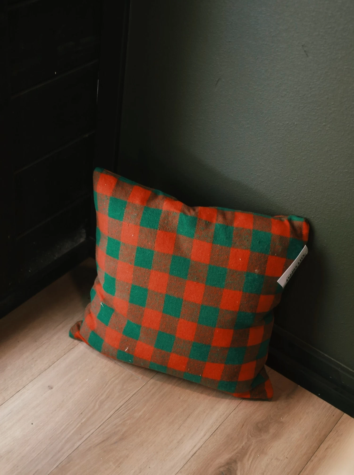 18″ Square Cotton Flannel Pillow, Red + Green Check