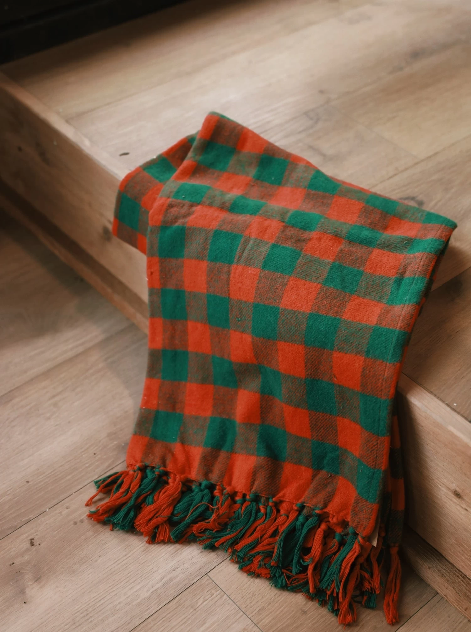 Red + Green Check Throw With Fringe