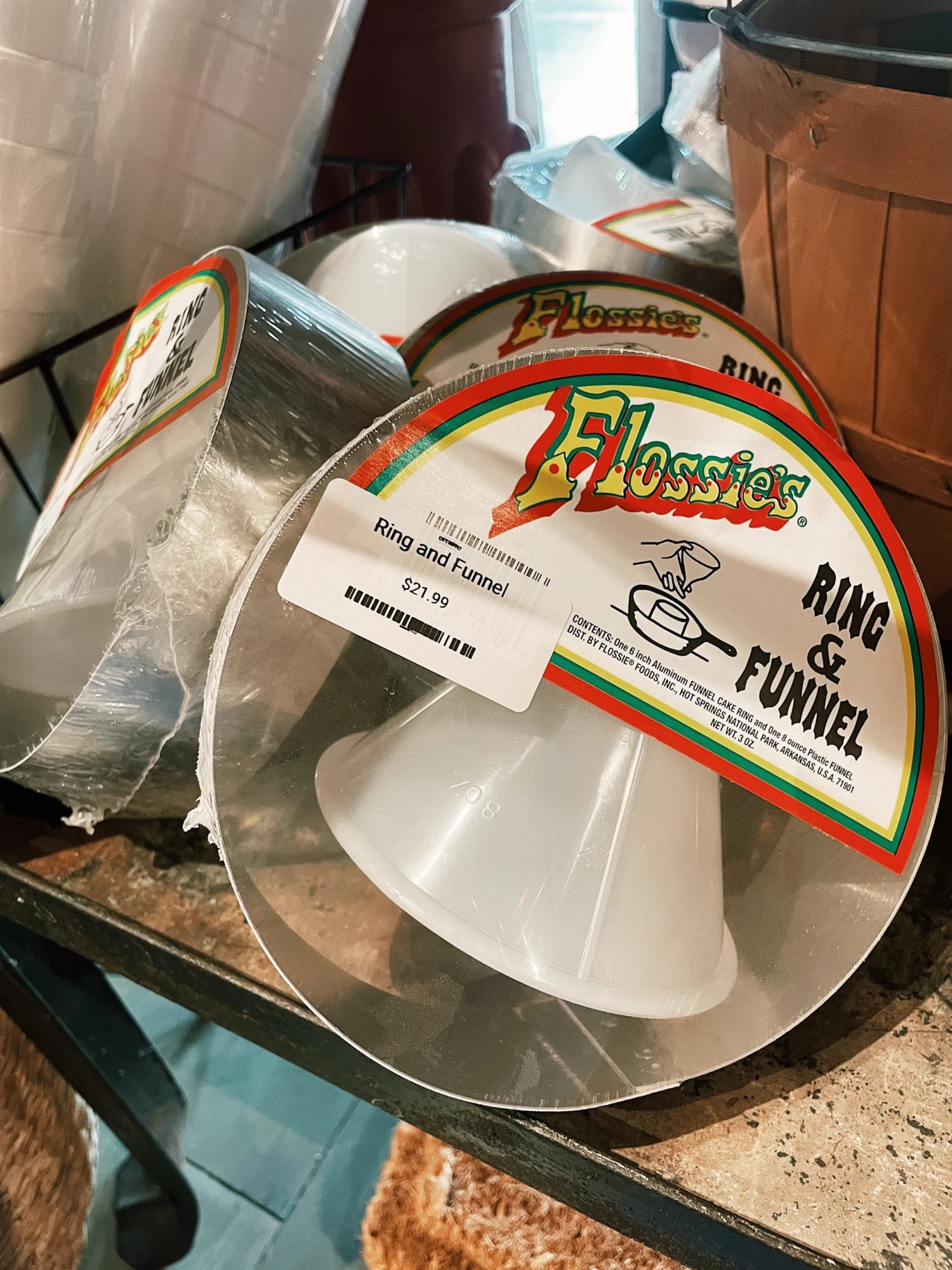 Make every funnel cake perfect every time! Flossie’s® Ring and Funnel is the perfect companion to Flossie’s Famous Funnel Cake Mix (not included). No more oddly shaped, lopsided funnel cakes! Using the ring and funnel, you can easily make funnel cakes like a pro! Makes a fun and unique gift for the foodie!