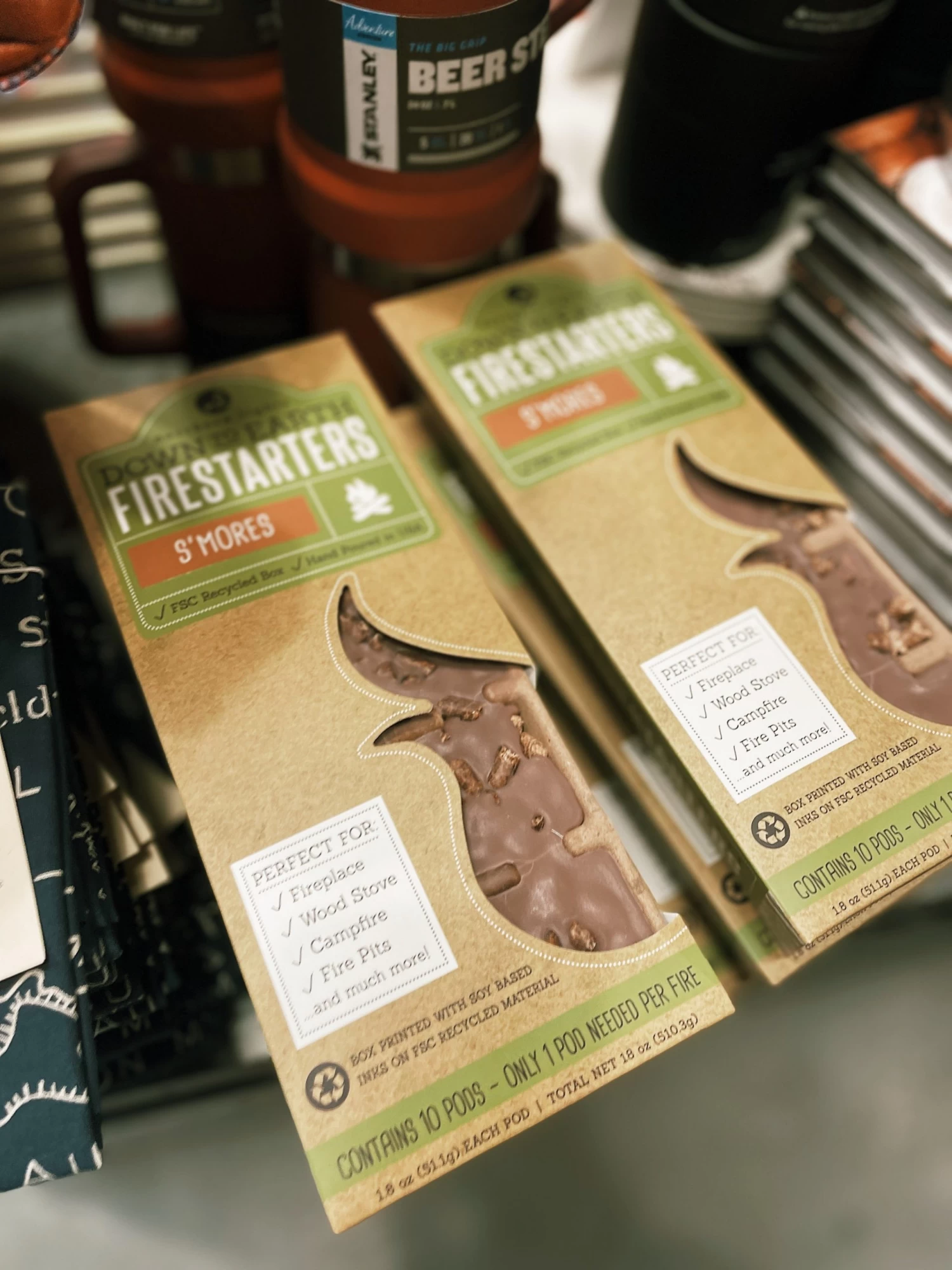 Our firestarters are perfect for fireplaces, wood stoves, campfires, and more. You’ll never need kindling again. Each Down To Earth Firestarter package contains 10 pods. Fragrance Notes: S’Mores.