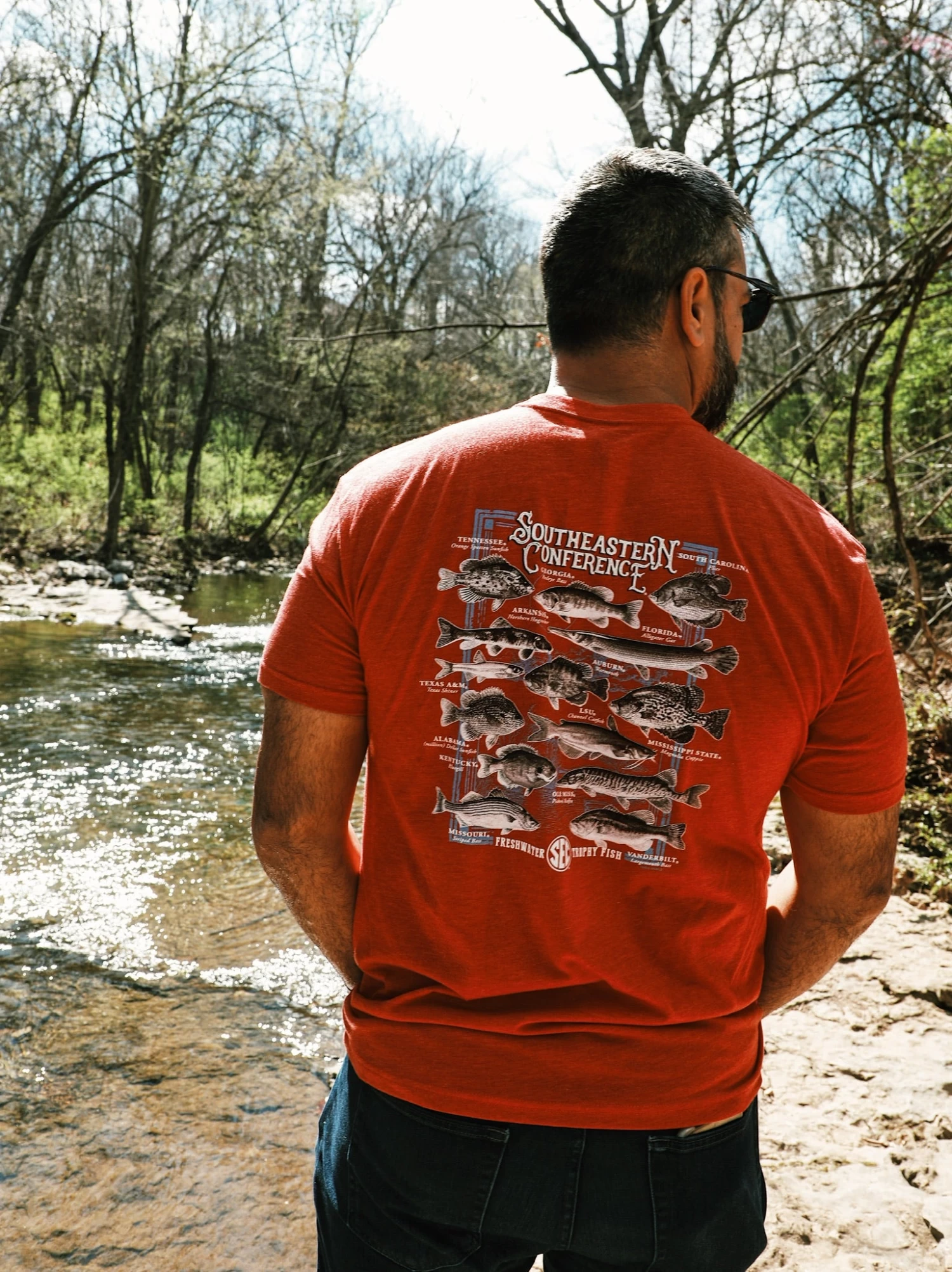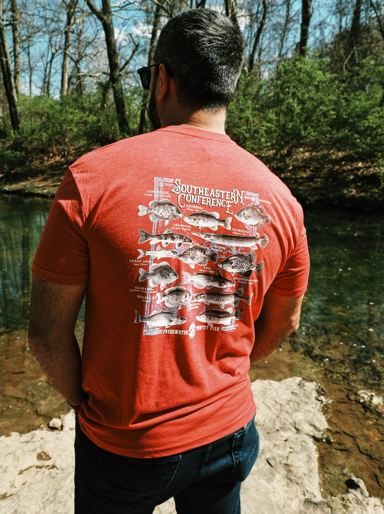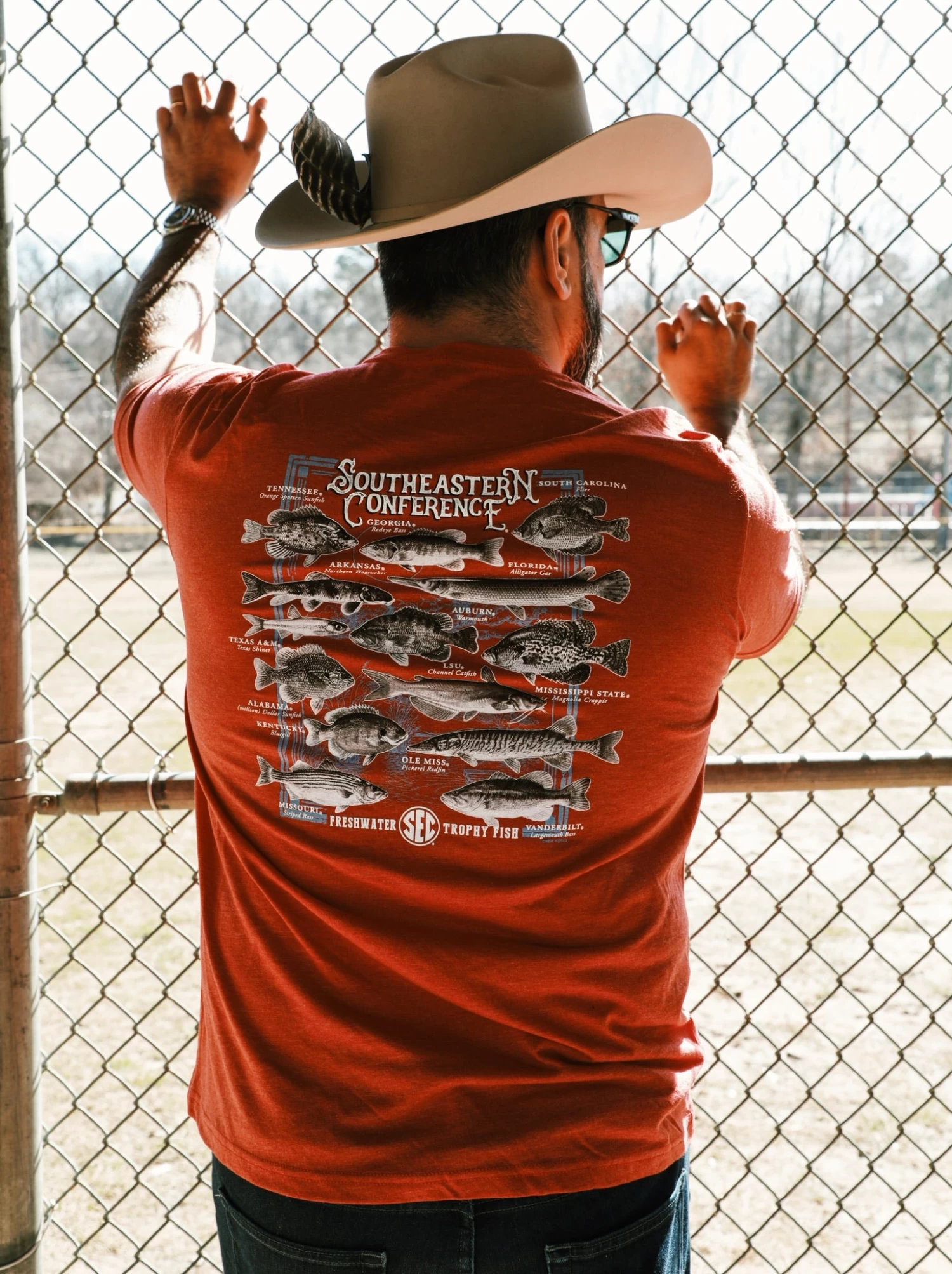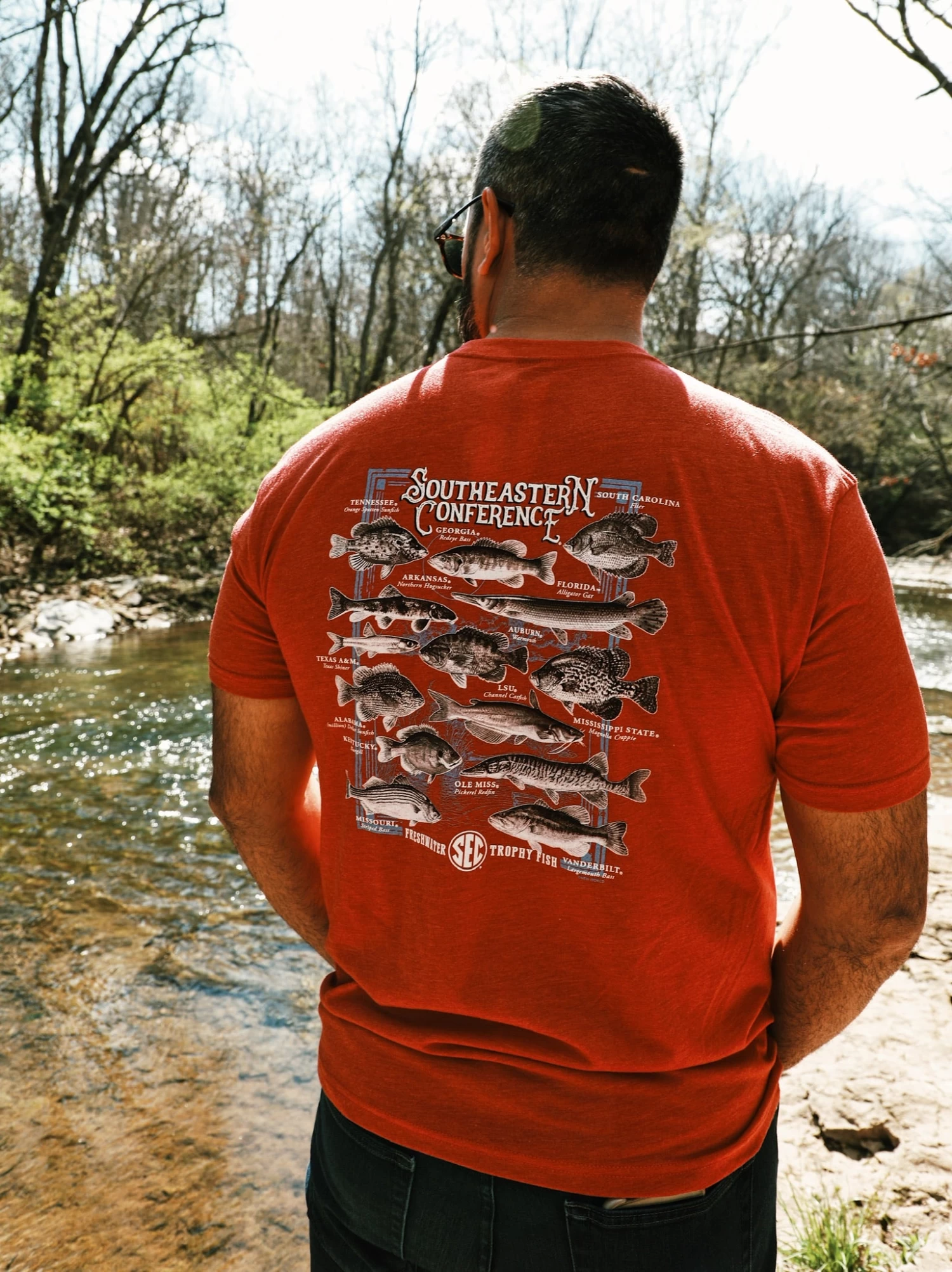 The SEC is a Sportsman’s Paradise! Each SEC school is represented on the back as their freshwater trophy fish.