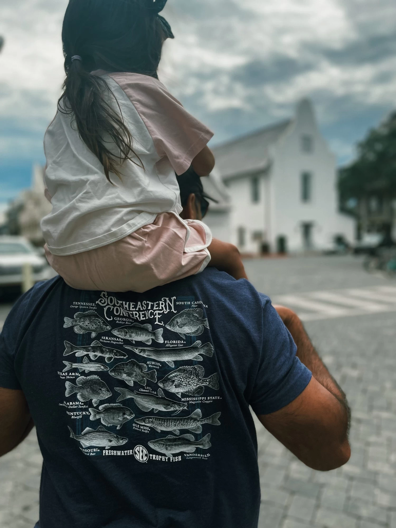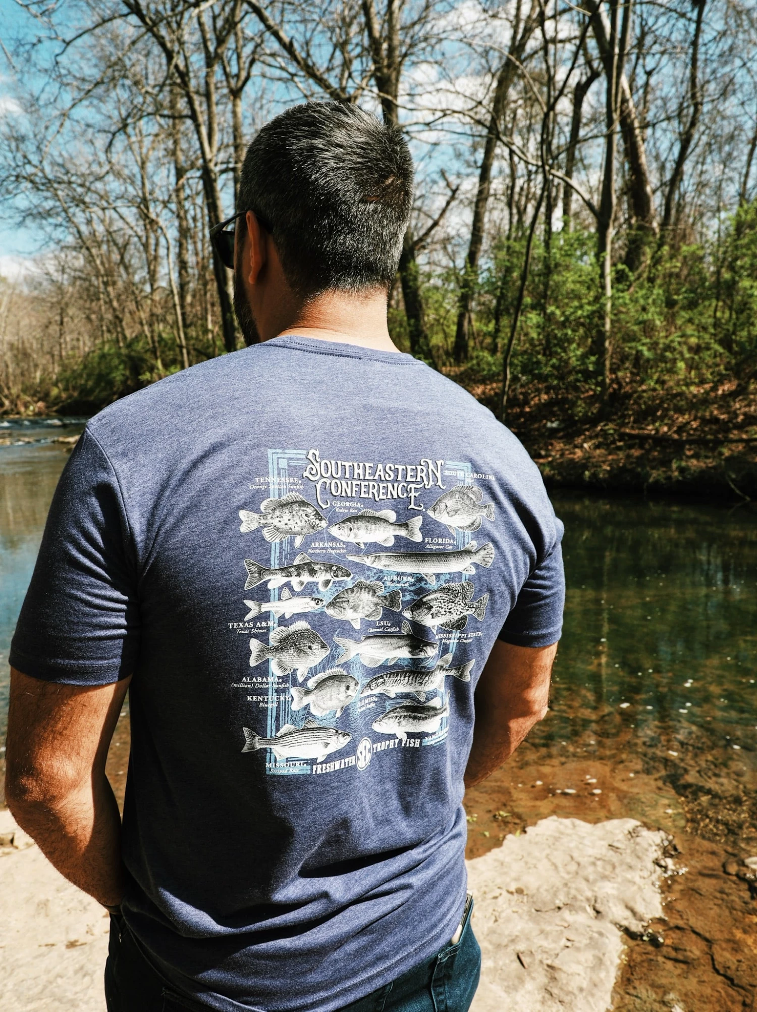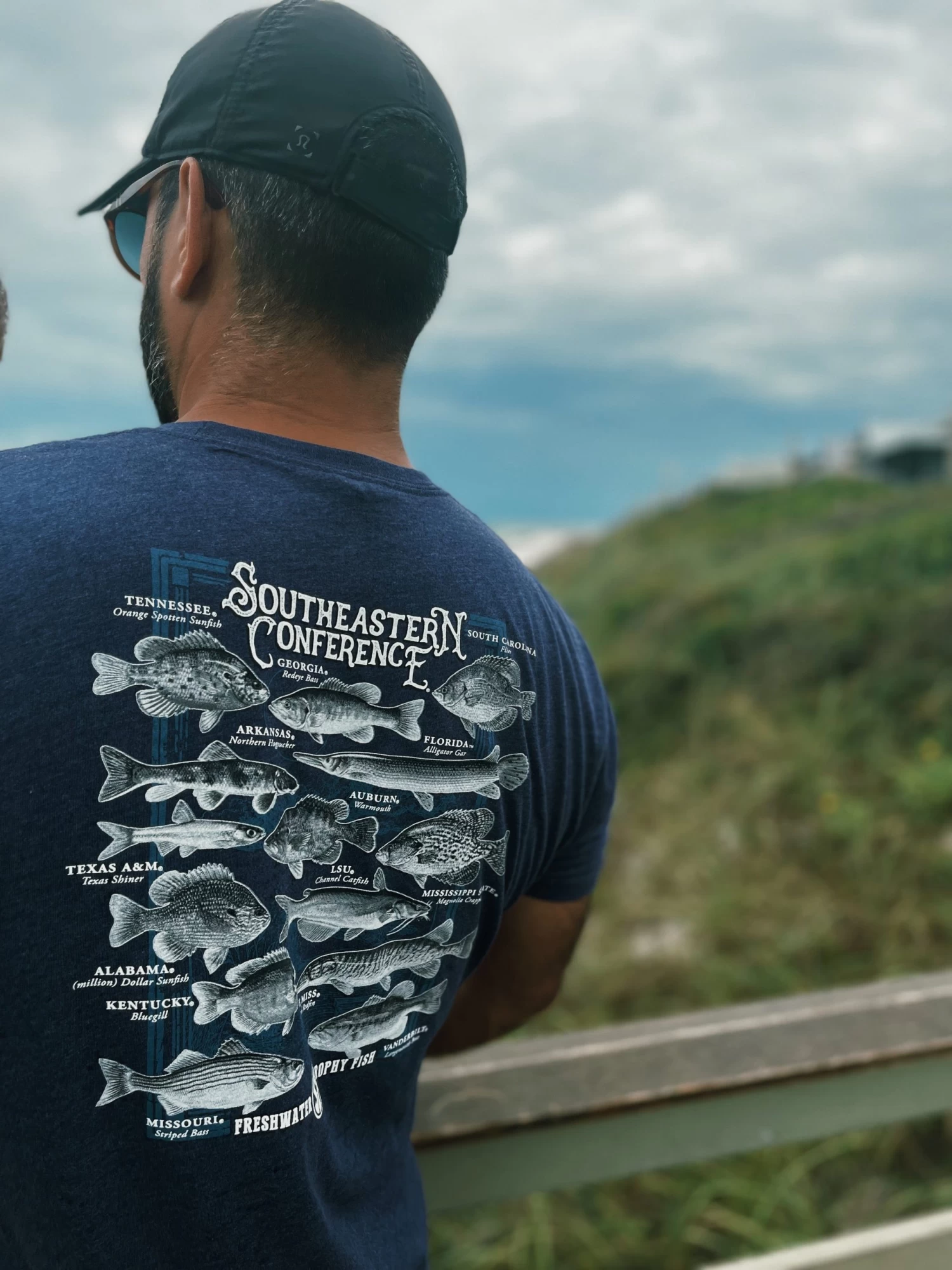 The SEC is a Sportsman’s Paradise! Each SEC school is represented on the back as their freshwater trophy fish.