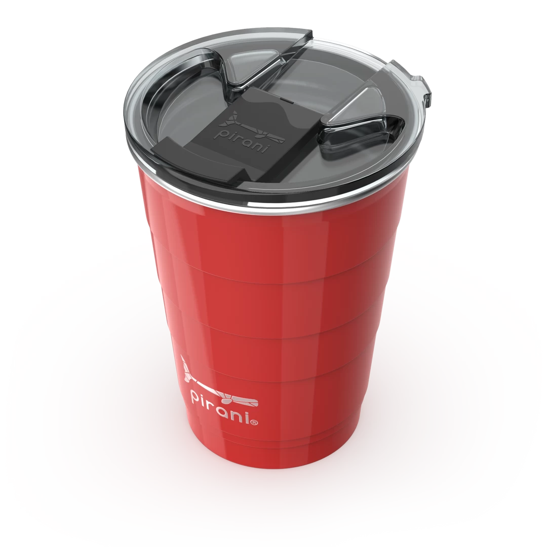 Party sustainably everywhere you go with this stainless steel, vacuum insulated, stackable and easy to carry Pirani reusable insulated tumbler. Keeps the spirit of the occasion alive and your drinks hot or cold all while earning you some good environmental juju by helping eliminate the 500 billion single-use cups wasted around the world each year. Bring this Reusable Party Cup to your favorite game, coffee shop, tailgating outside a concert, into your college dorm, on your back deck or wherever you choose to adventure. In the middle of summer or dead winter, your drinks are guaranteed perfect.