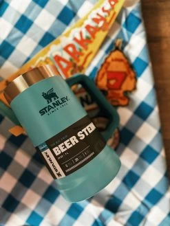 Raise a glass to fun with this durable stainless steel beer vessel. It’s big enough to hold two cans of beer and keep them cold from the minute you pour to the moment you finish your last sip. A heavy-duty handle lets you keep a firm and steady grip on your drink.