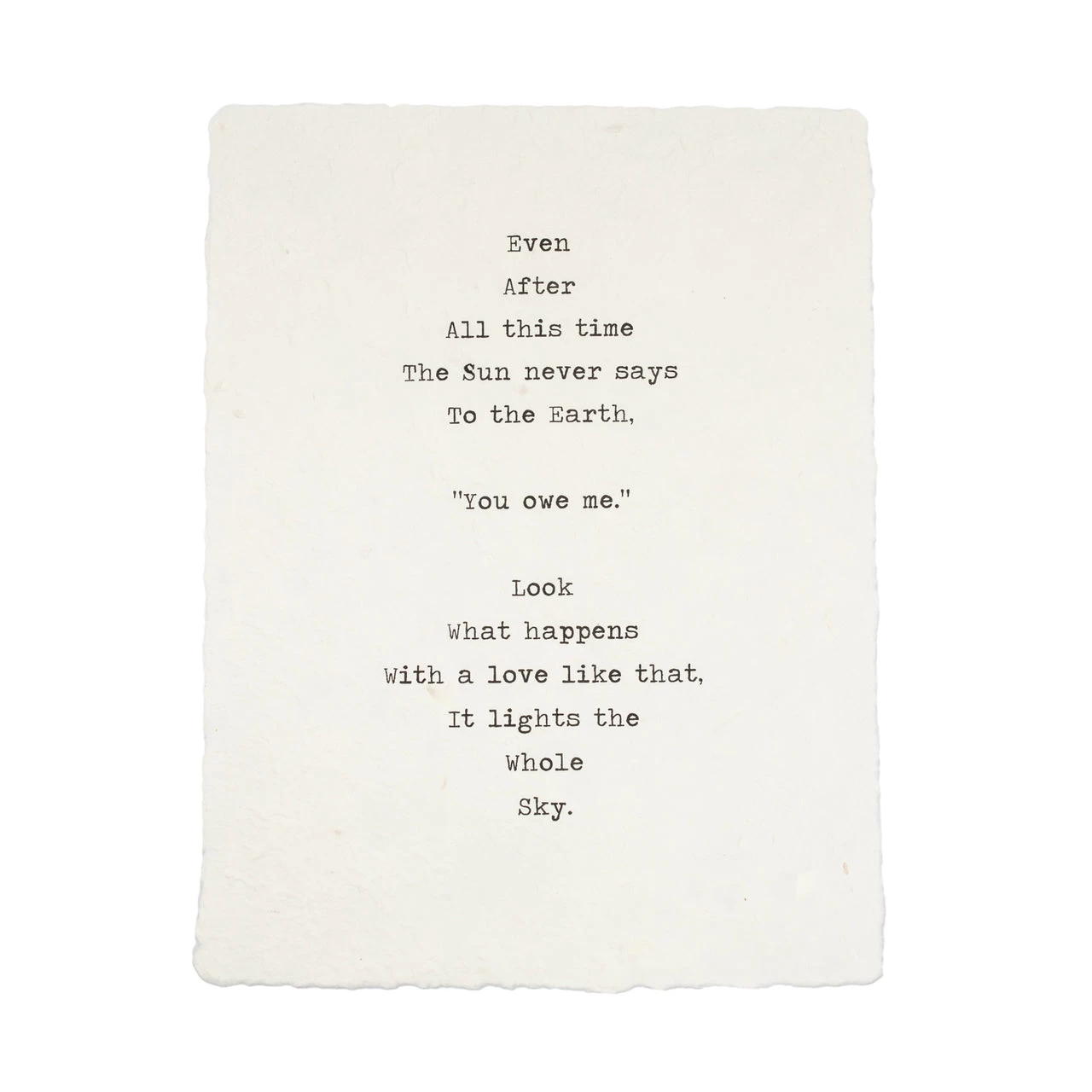 Quote reads, “Even After All this time The Sun never says To the Earth ‘You owe me.’ Look What happens With a love like that, It lights the Whole Sky”