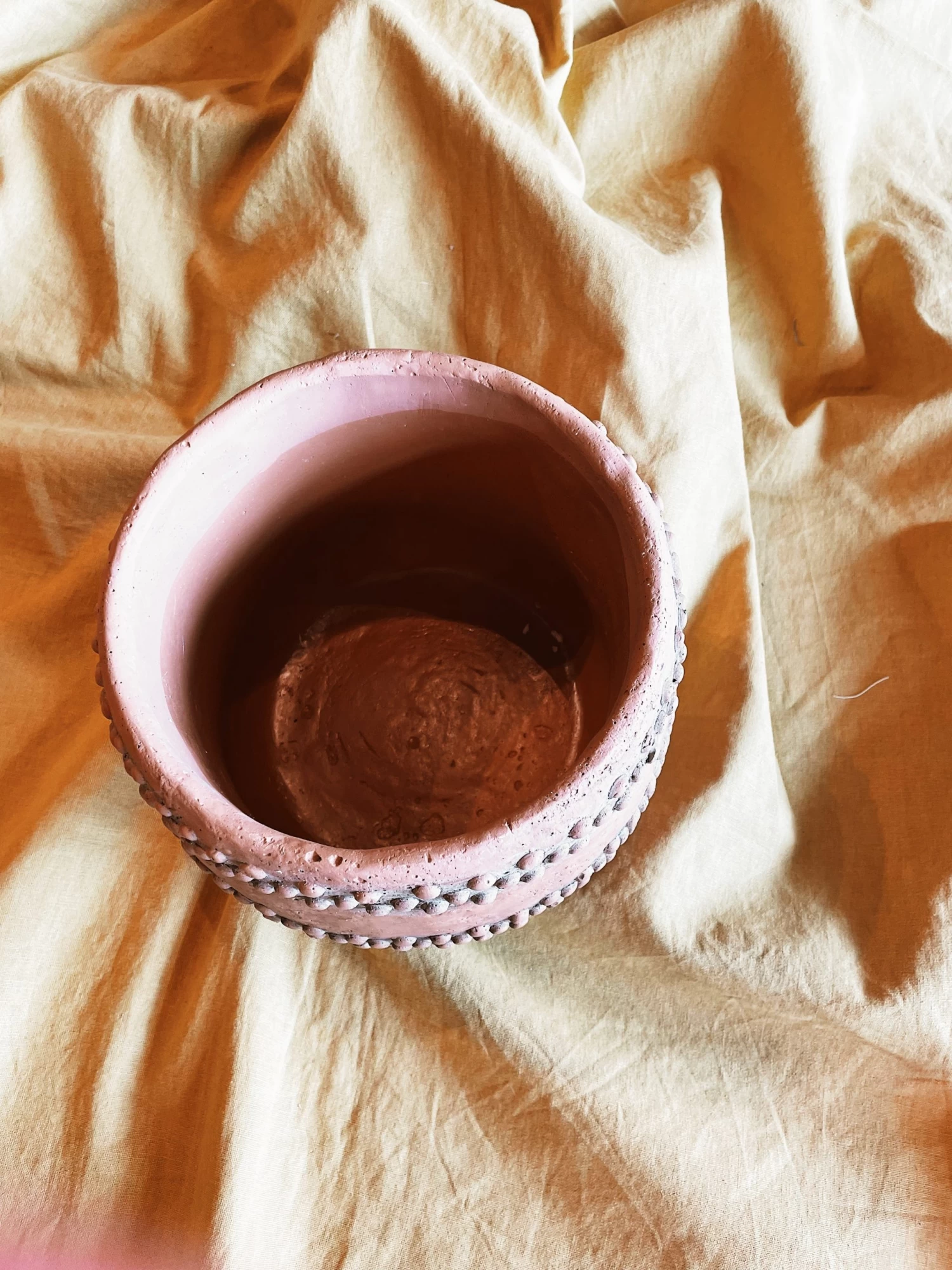 If you want your plants to look their best, place them in a decorative pot or planter. This pot is made with cement.