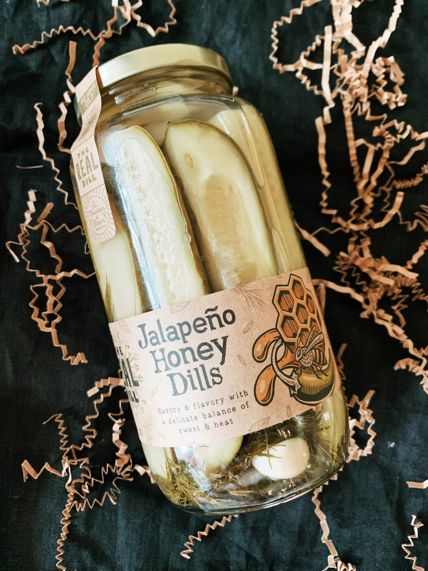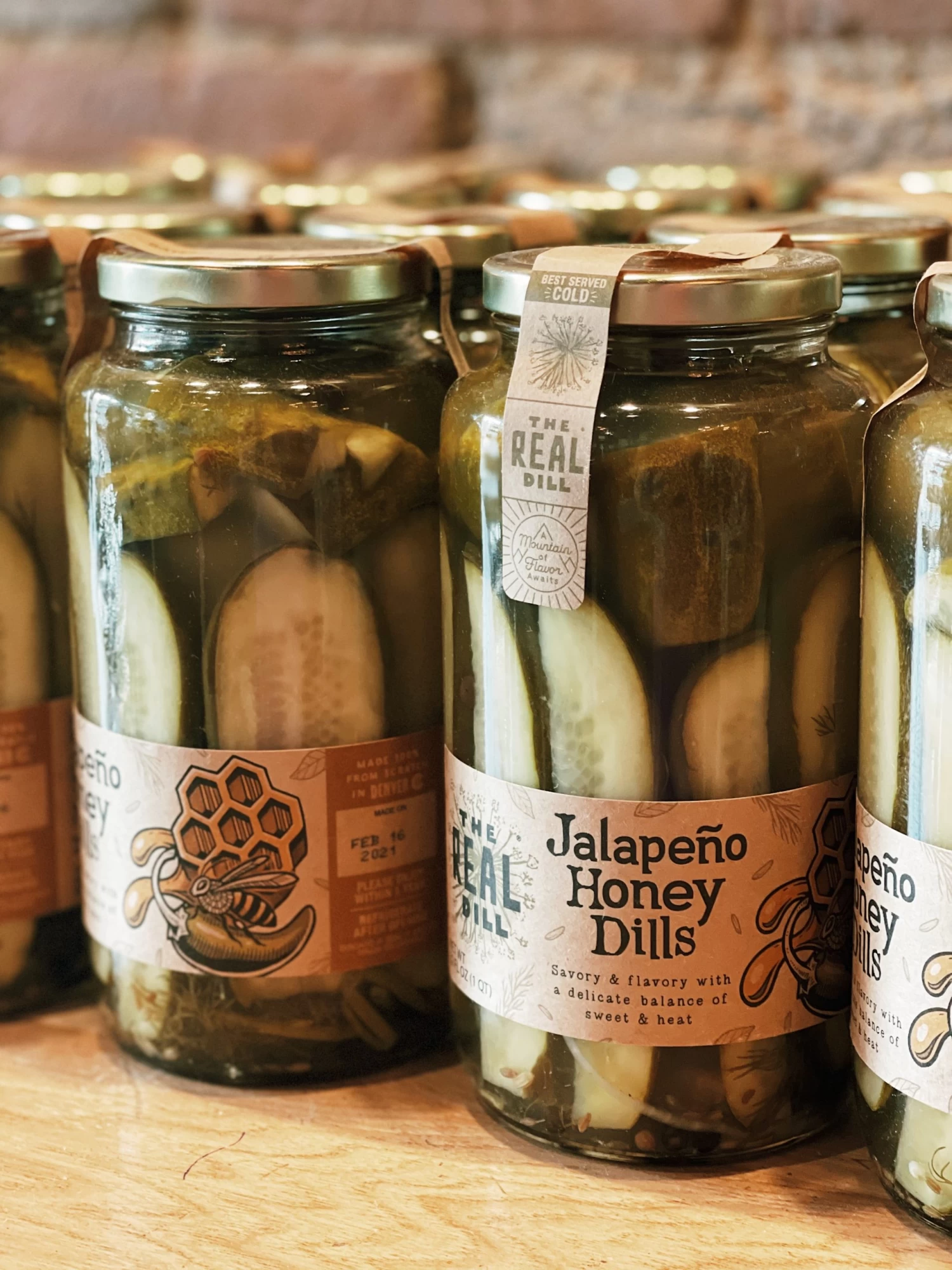 A dynamic combination of Colorado wildflower honey, jalapeño, and onion create a pleasant balance of sweet and savory. The fateful day when we cracked open the first jar of these contrastingly nuanced pickles is now referred to as “The Pickle Epiphany,” when our hobby officially graduated to a profession. If homemade was a flavor, it’s what you taste in these uniquely familiar, yet one-of-a-kind pickles.