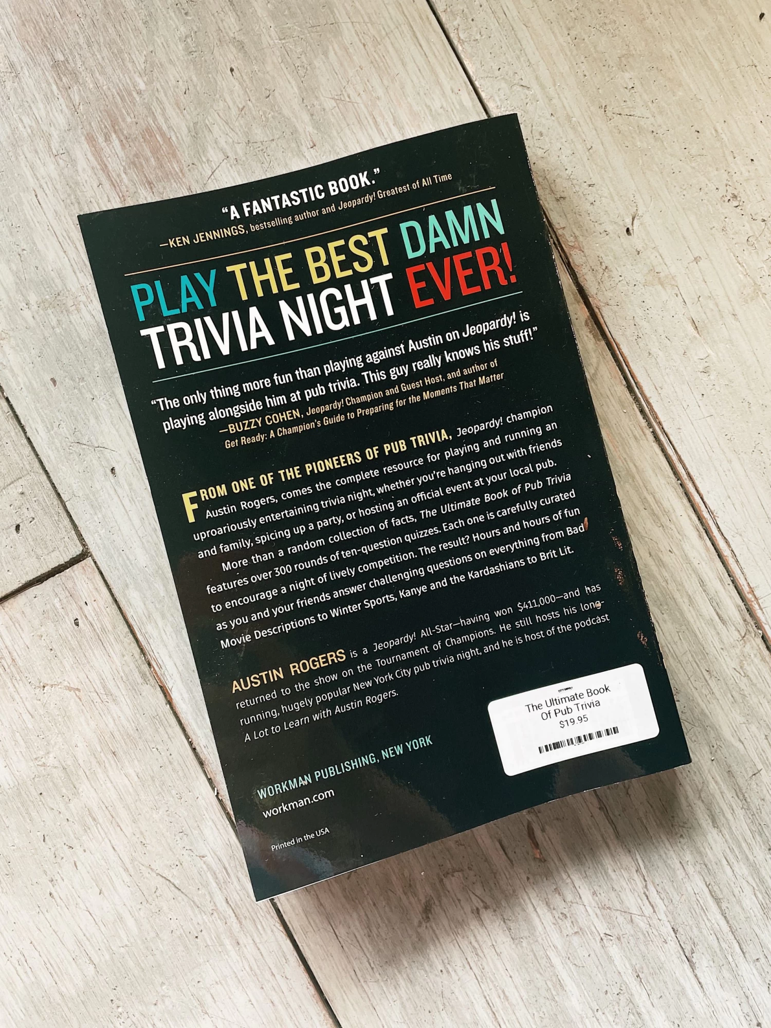 From one of the pioneers of pub trivia, Jeopardy! champion Austin Rogers, comes the complete resource for playing and running an uproariously entertaining trivia night, whether you’re hanging out with friends and family, spicing up a party, or hosting an official event at your local pub.