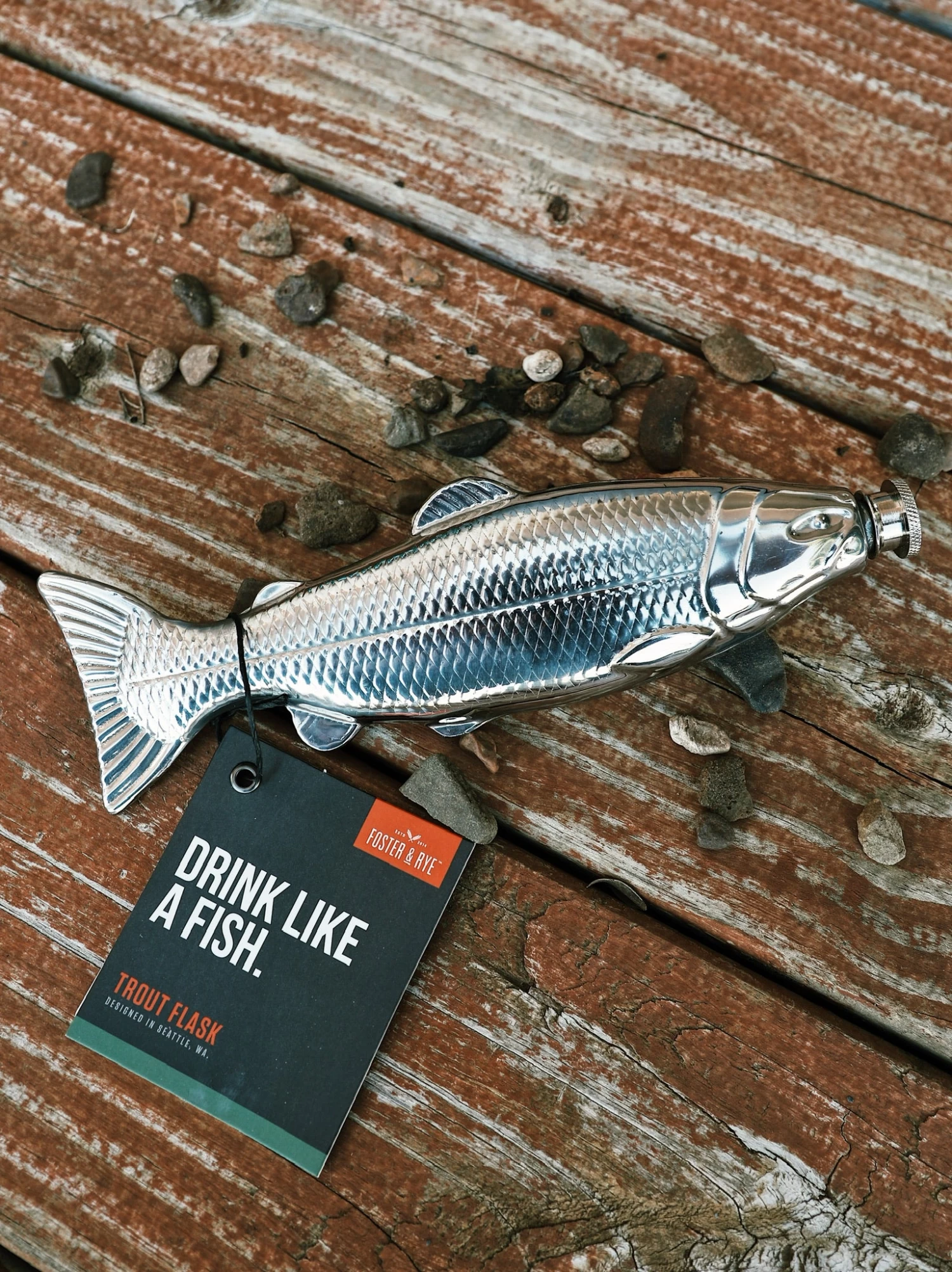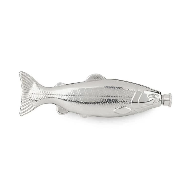 Cast in shimmering stainless steel, our true-to-life trout flask is perfect for anyone who can drink like a fish. Tucking covertly into a backpack or fishing vest pocket, it holds four ounces of any elixir. Really, what better way to get sloshed?.—Accommodates 4 oz comfortably–Tight-fitting cap–Stainless steel–Fishing lovers necessity–