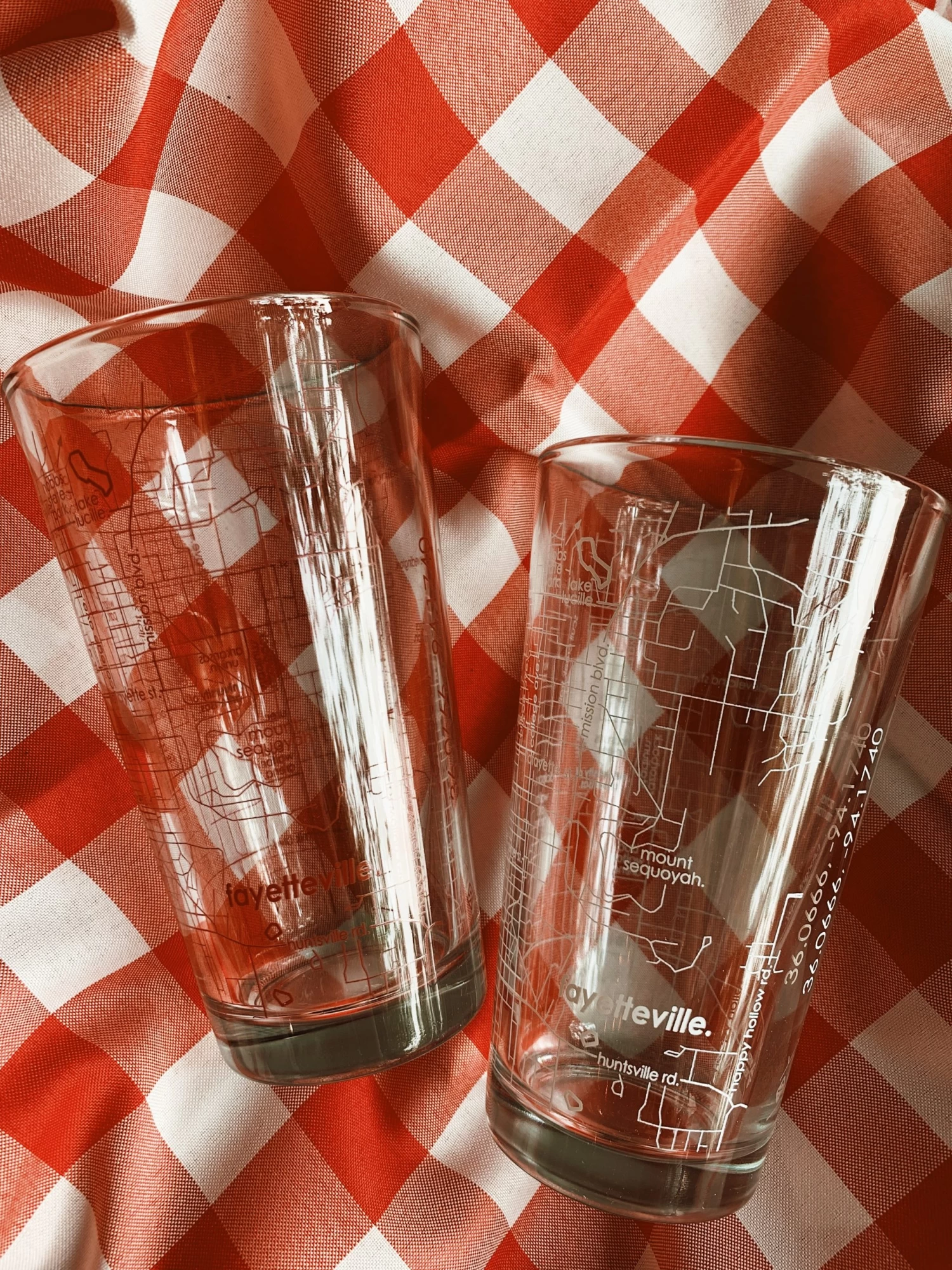 Raise a glass to your alma mater with our College Town Map Pint Glasses, featuring a map of Fayetteville AR, home of University of Arkansas. Each pint glasses features a beautifully detailed map showcasing the streets, neighborhoods, and coordinates of your favorite U.S. college town printed in the vibrant colors of the home team. Each set of 2 comes boxed in our eco-friendly, retail-ready packaging.